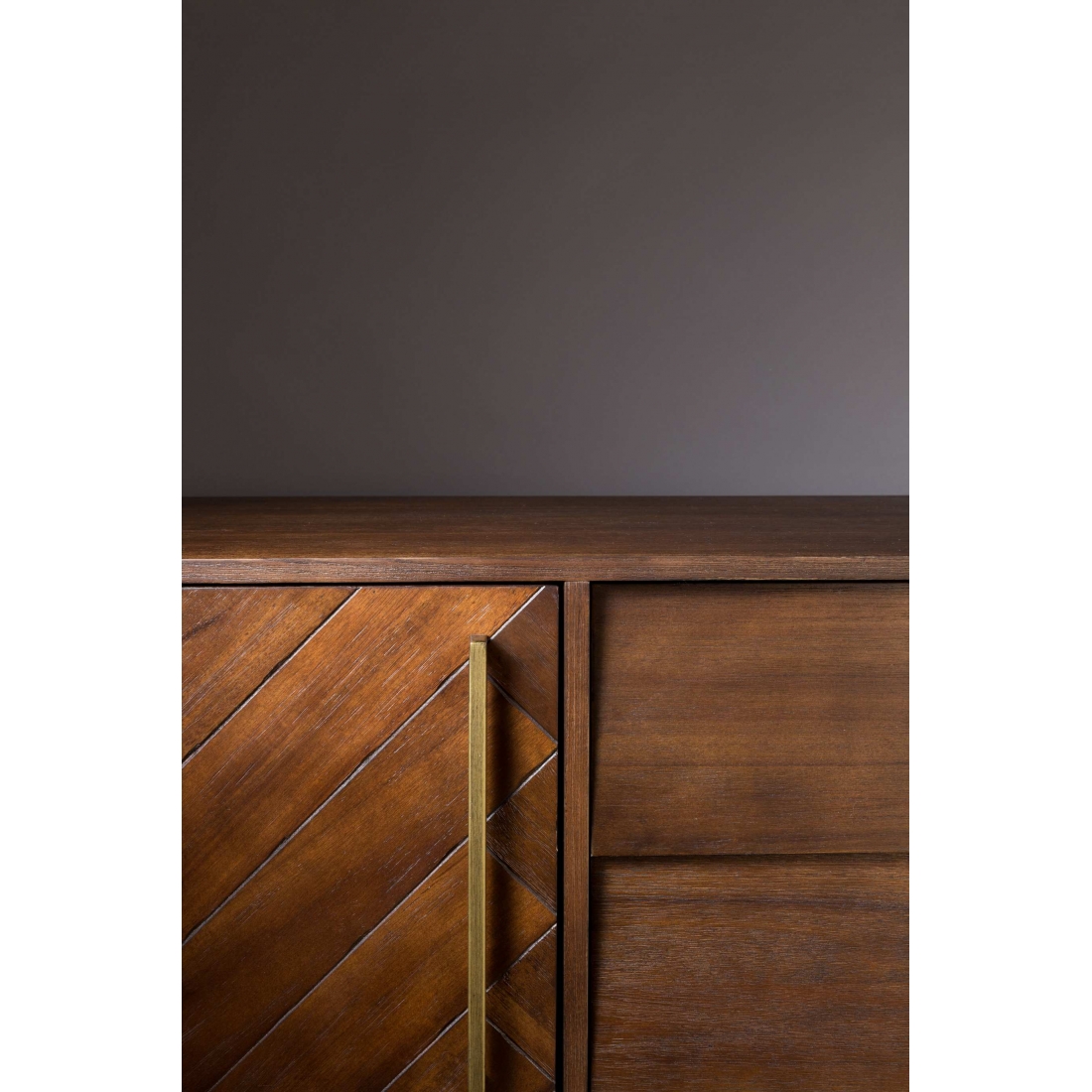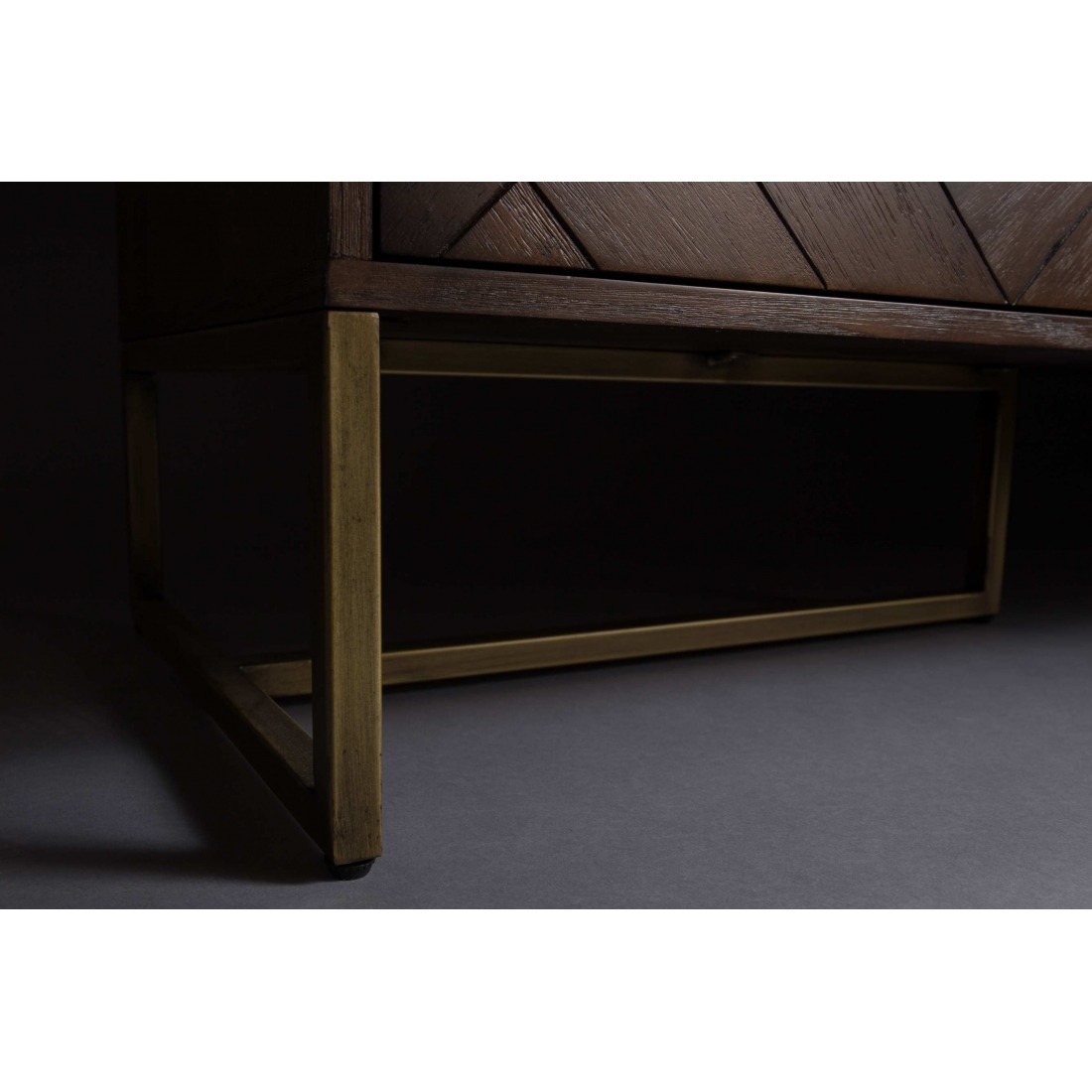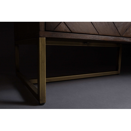 Komoda DUTCHBONE CLASS má dýhové tělo z akáciového dřeva s PU lakováním. 20 mm ocelový rám s povrchovou úpravou v imitaci starožitné mosazi.