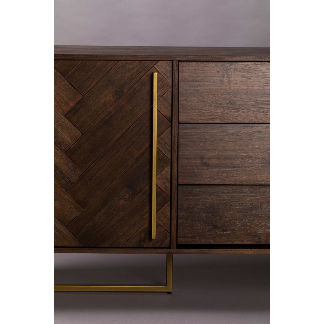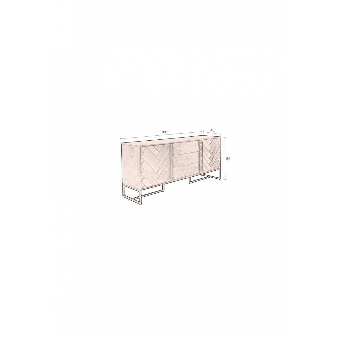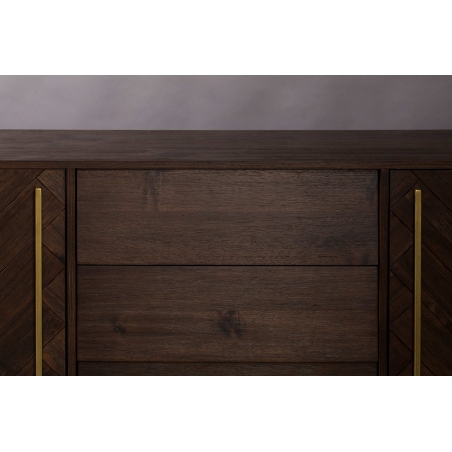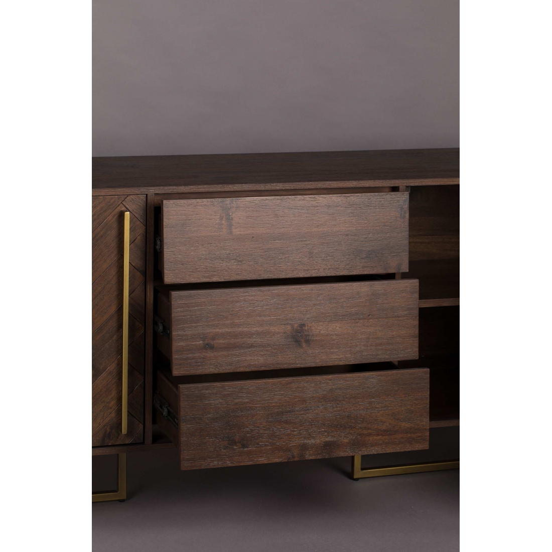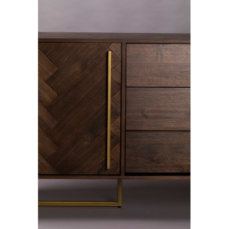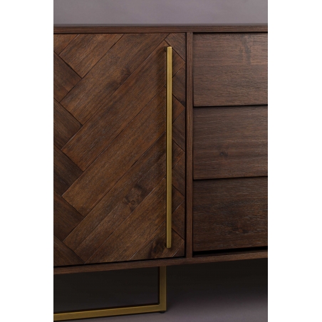 Komoda DUTCHBONE CLASS má dýhové tělo z akáciového dřeva s PU lakováním. 20 mm ocelový rám s povrchovou úpravou v imitaci starožitné mosazi.