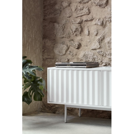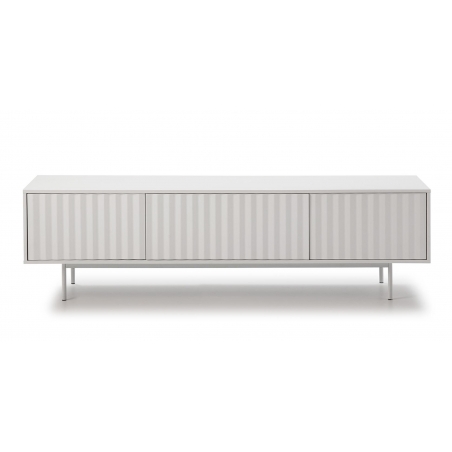 TV stolek Sierra je inspirován horskými hloubkami, jejichž vnímání objemů je ovlivněno kolísáním světla. Má 3 dvířka a za nimi úložný prostor kde se nachází díra na kabely. Soft close (tiché dovírání). Čistit vlhkým hadříkem nebo houbou, nepoužívat agresivní a abrazivní čističe.