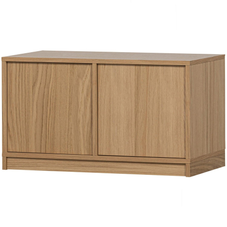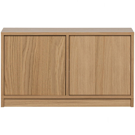 Designová komoda MODULAIR z dubové dýhy. Dub se vyznačuje světle hnědým odstínem s jemnou žlutou barvou a jasně viditelným vzorem zrn. Vzhledem k tomu, že dřevěná dýha je přírodní produkt, mohou existovat malé rozdíly v barvě a zrnitosti, díky nimž je každý kus nábytku jedinečný. Dveře skříně mají systém push-to-open. Lze kombinovat se zbytkem kolekce.