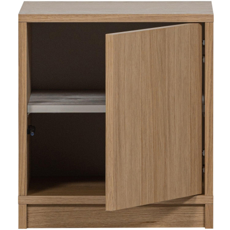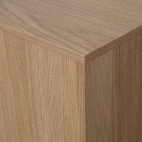 Designová komoda MODULAIR z dubové dýhy. Dub se vyznačuje světle hnědým odstínem s jemnou žlutou barvou a jasně viditelným vzorem zrn. Vzhledem k tomu, že dřevěná dýha je přírodní produkt, mohou existovat malé rozdíly v barvě a zrnitosti, díky nimž je každý kus nábytku jedinečný. Dveře skříně mají systém push-to-open. Lze kombinovat se zbytkem kolekce.