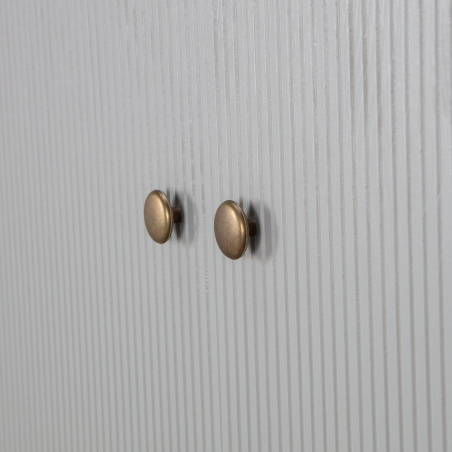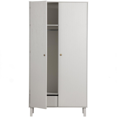 Stylová otevřená knihovna Madu z kombinace borového dřeva a kovu. Nabízí dostatek úložného prostoru se 4 policemi. Za dveřmi jsou dvě police. Zlaté detaily v kombinaci se světle šedým borovým dřevem také dodávají skříňce moderní a robustní charakter. Otevřené police nahoře poskytují prostor pro vystavení dekorací.