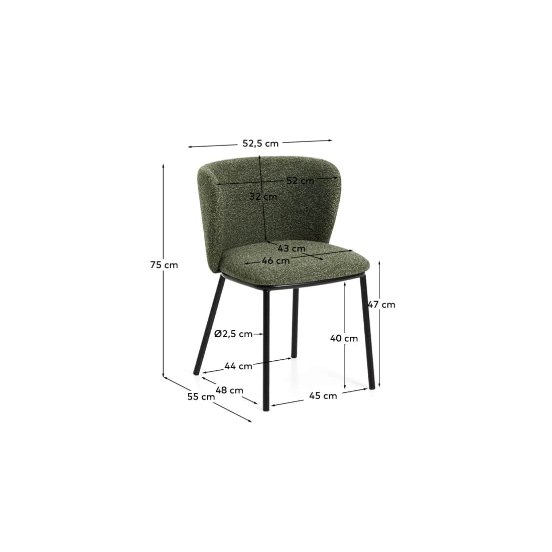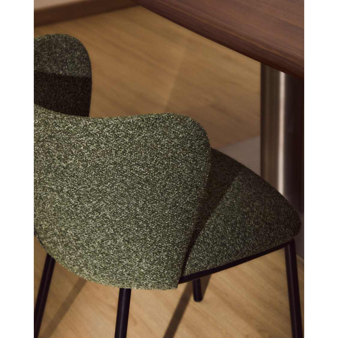 Ocelové nohy s práškovou barvou v polomatné černé barvě jsou odolné vůči nárazům, škrábancům a opotřebení a zachovávají si svůj vzhled i po dlouhou dobu. Sedadlo je vyplněno polyuretanovou pěnou o hustotě 28 kg/m³ a poskytuje pevný a odolný komfort pro každodenní používání.