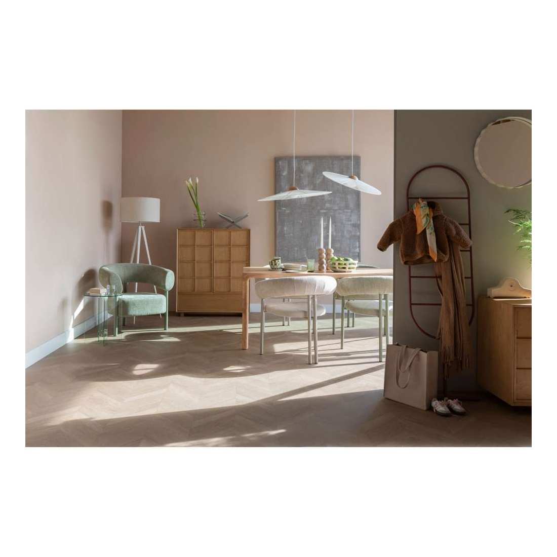 Designová jídelní židle ARMS měkká na dotek. Plně čalouněné látkou Moza, která je příjemná a rovnoměrně barevná, poskytuje moderní a stylový vzhled.