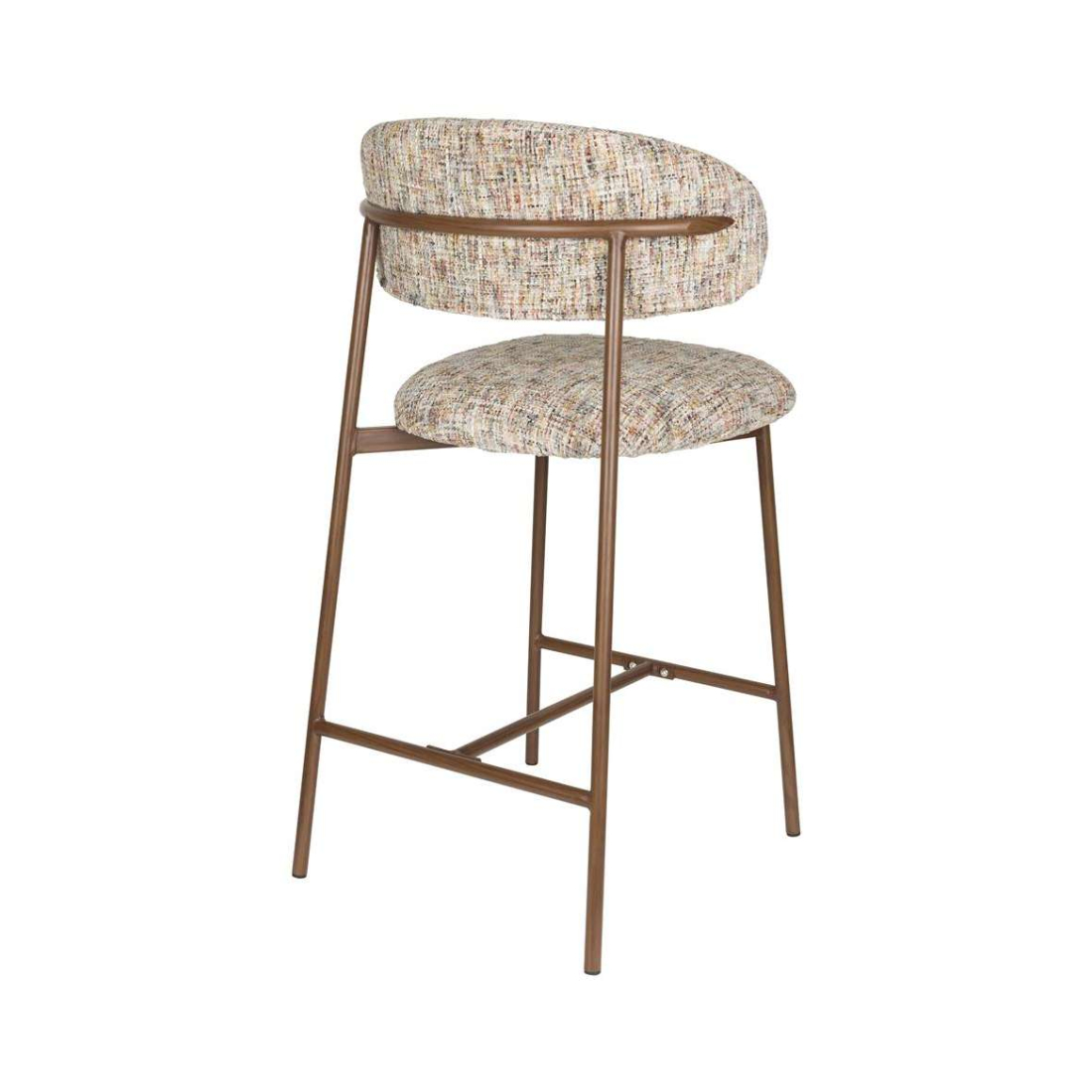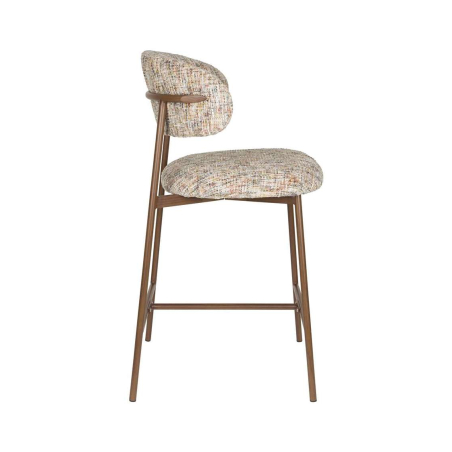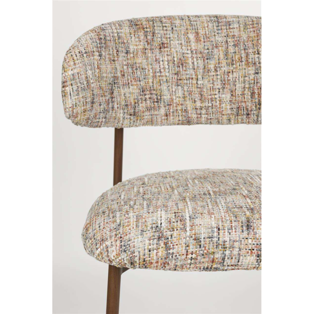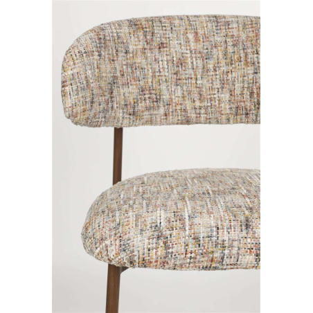 Designová pohodlná židle CLAES s měkkou tkaninou a kovovými nohami v hnědé barvě. Lze jej také kombinovat s jídelní židlí.