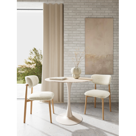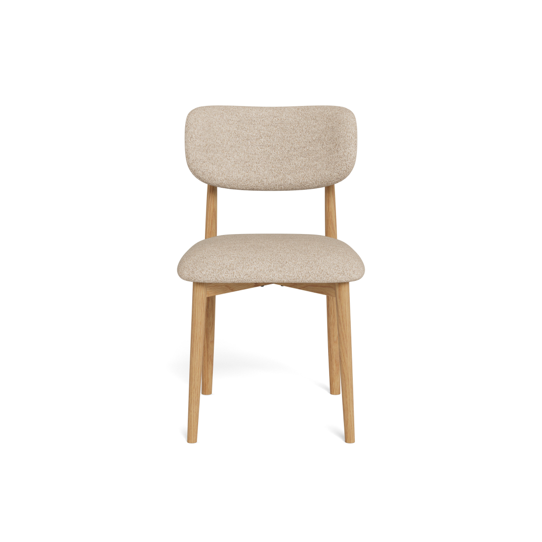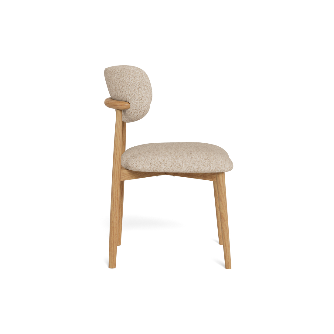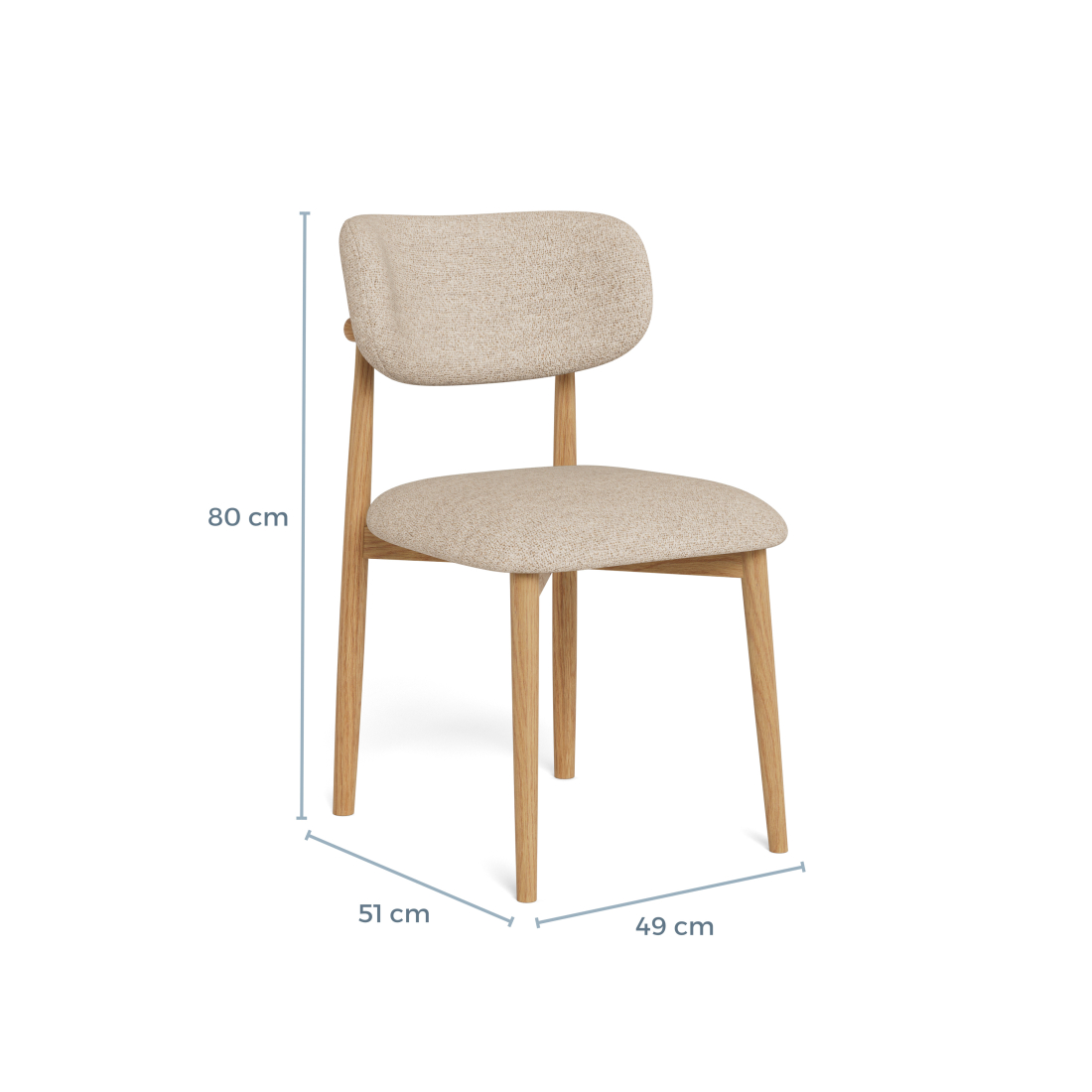 Pohodlná jídelní židle s nadčasovým vzhledem LONSA. Jídelní židle je čalouněna buklé látkou a má dřevěnou masivní dubovou konstrukci v matné povrchové úpravě.