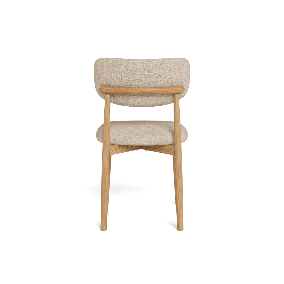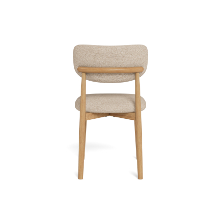 Tato jídelní židle vyniká svým robustním designem, který nese výraznou, ale zároveň přitažlivou energii, díky čemuž je ideálním doplňkem do jídelny. Židle s robustním lakovaným dubovým nohama a elegantní buklé látkou nabízí texturovaný, přírodní vzhled. Odkrytý rám v zadní části dodává jemný efekt „wow“.