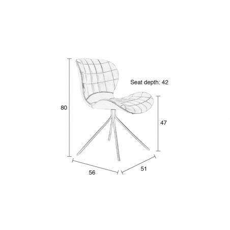 OMG je moderní židle s dokonale tvarovaným ergonomickým sedátkem. Dřevěná skořepina židle je čalouněná v látce se sametovým vzhledem. Nohy jsou zhotoveny z černé oceli. OMG je k dispozici v různých verzích: čalouněná, PU kůže, samet a také jako kancelářská židle s kolečky. Na dřevěné podlahy doporučujeme použít speciální podlahové kluzáky OMG.
