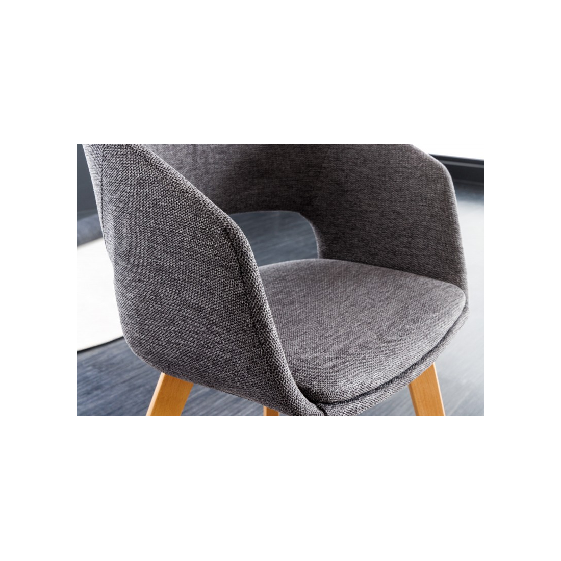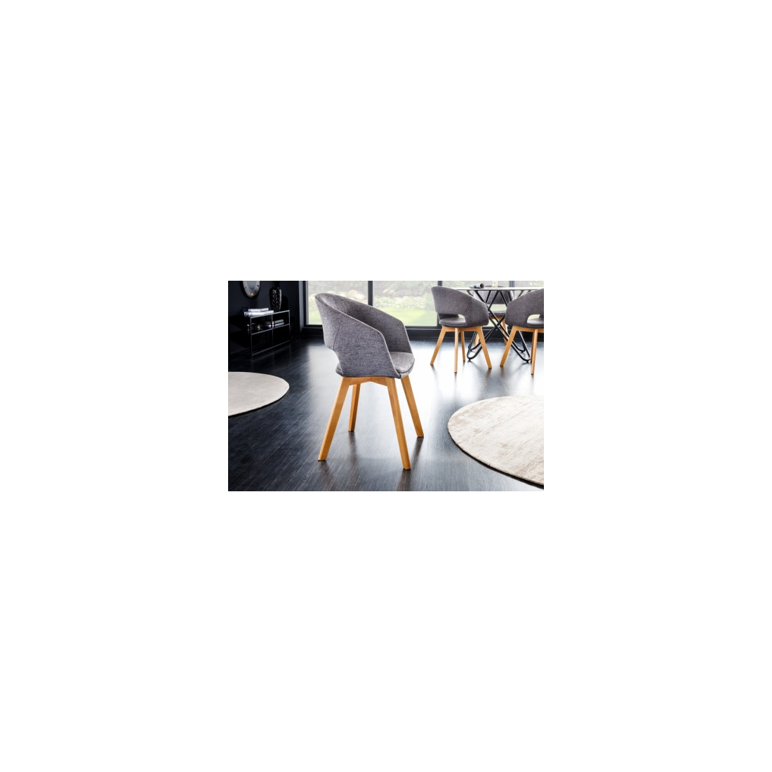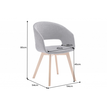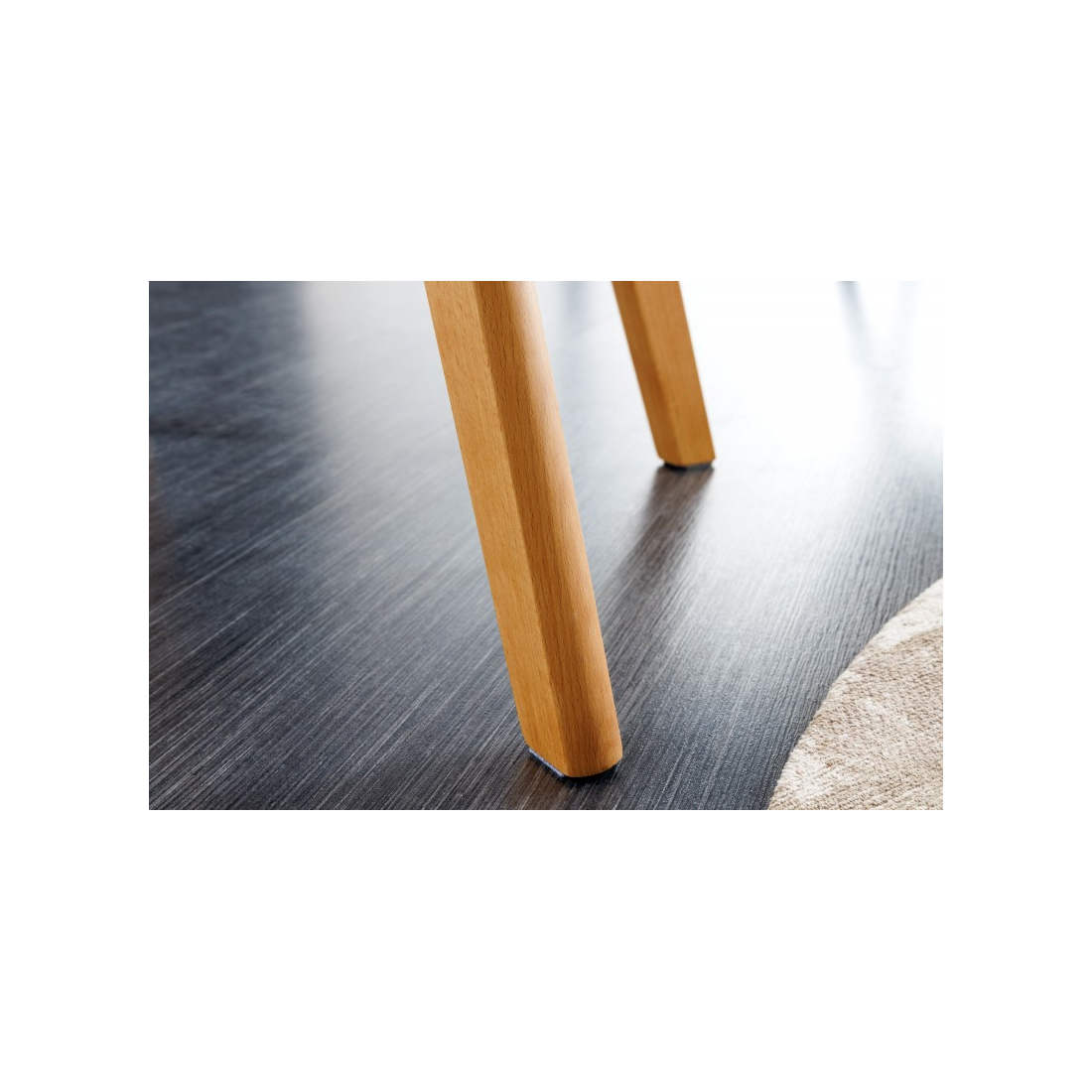 Pohodlná židle čalouněná v látce s vykrojenou zádí. Nohy černě lakované bukové.