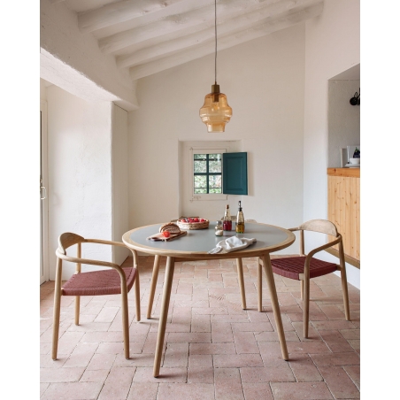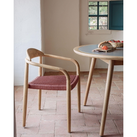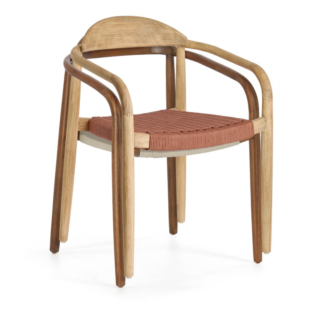 Stohovatelná židle Nina s područkami, vyrobená z přírodních materiálů. Rám je vyroben z masivního akáciového dřeva s přírodním povrchem, který nabízí jedinečné tóny a kresby v každém kusu. Sedadlo je vyrobeno z ručně tkaného lana ve více barvách odolného vůči UV záření. Pro vnitřní i vnější (kryté) použití. Dostupná v různých povrchových úpravách nebo barvách.
