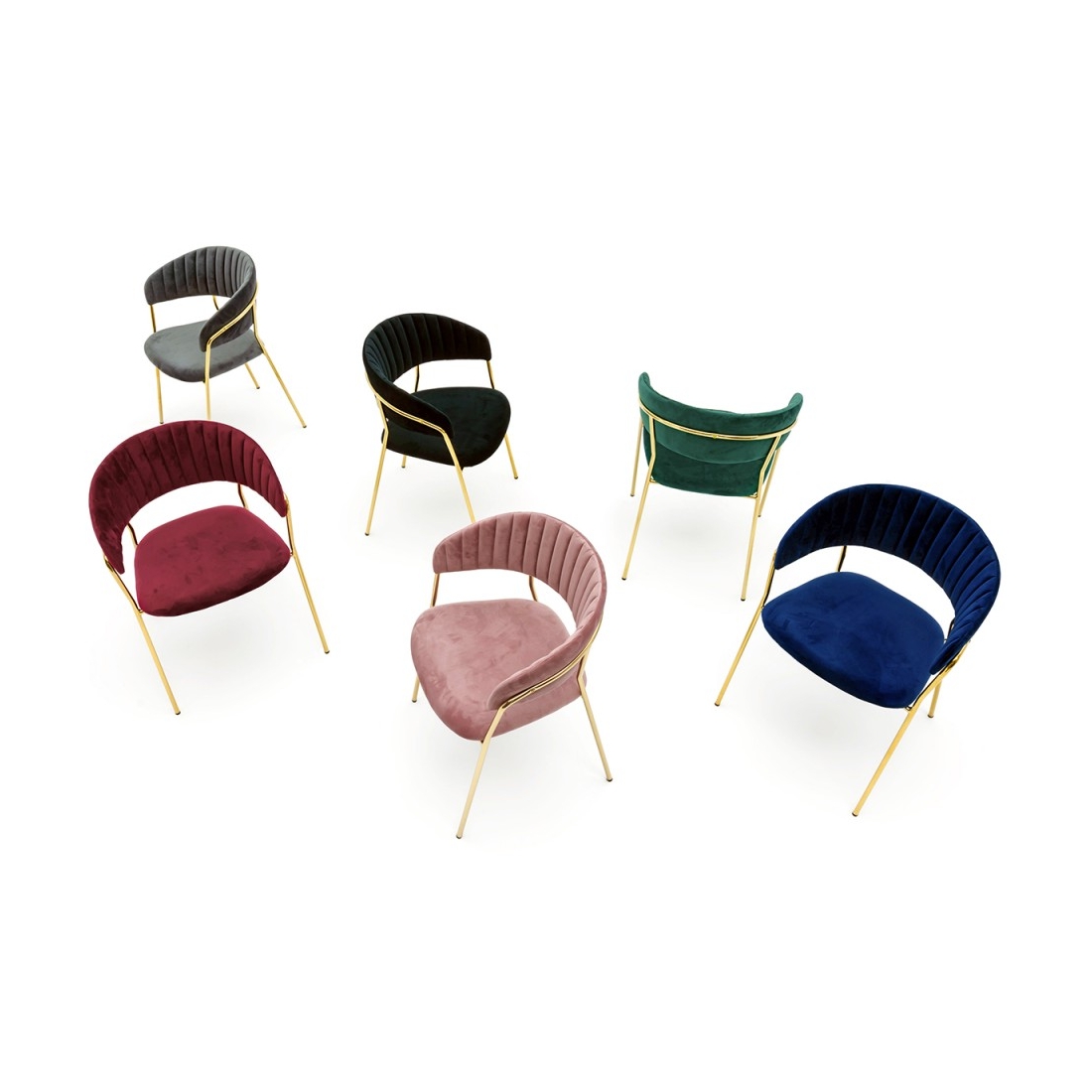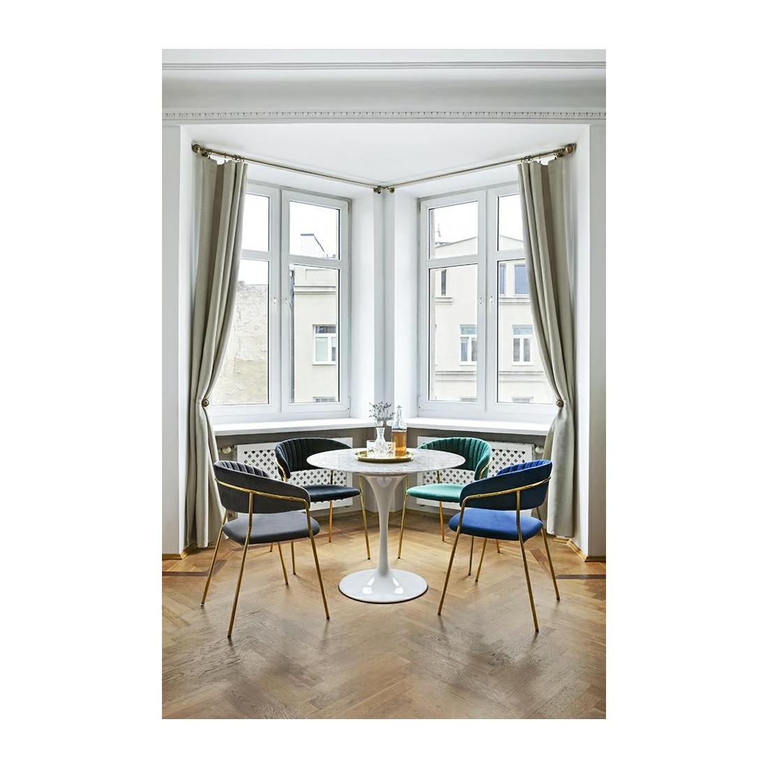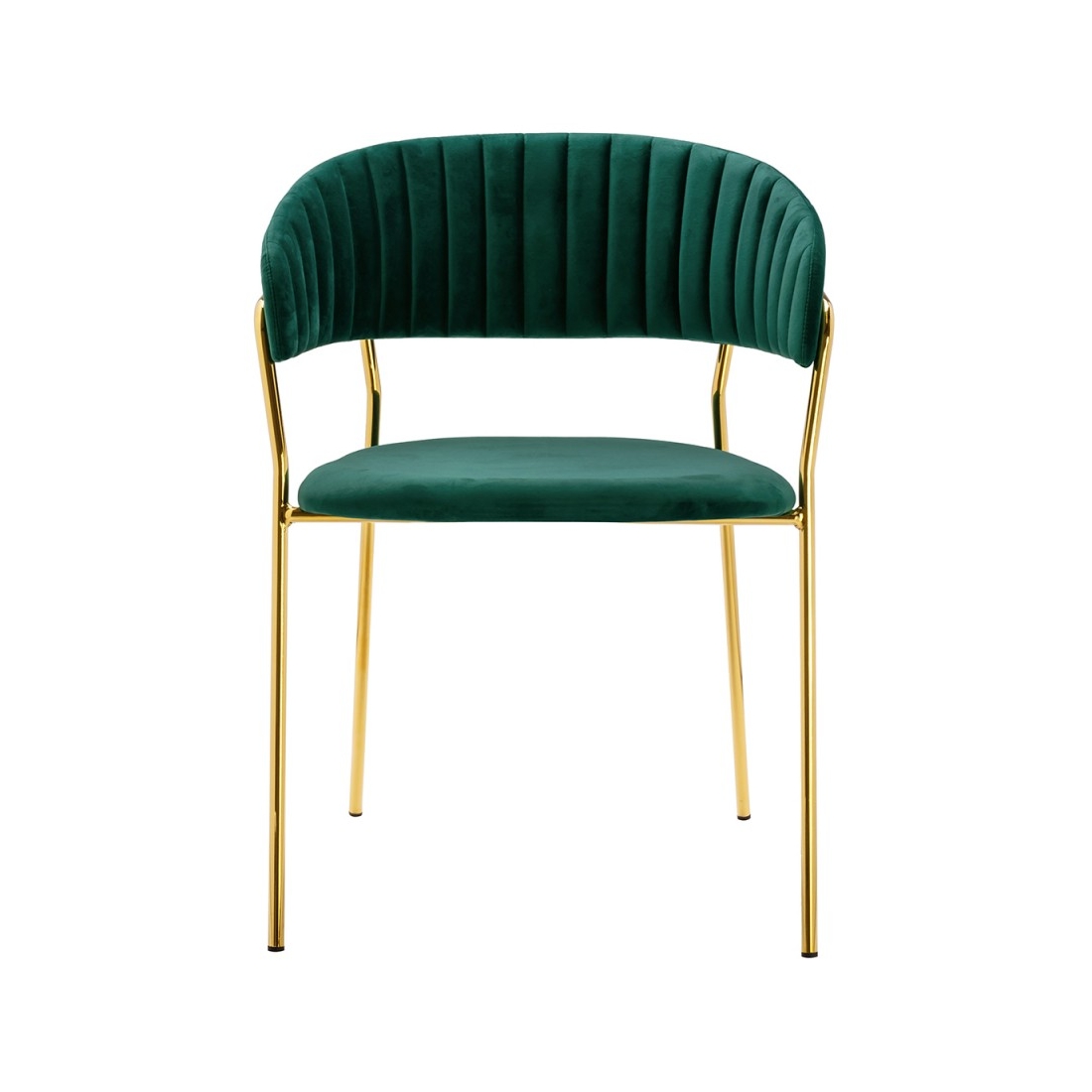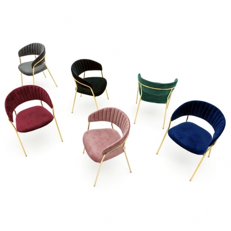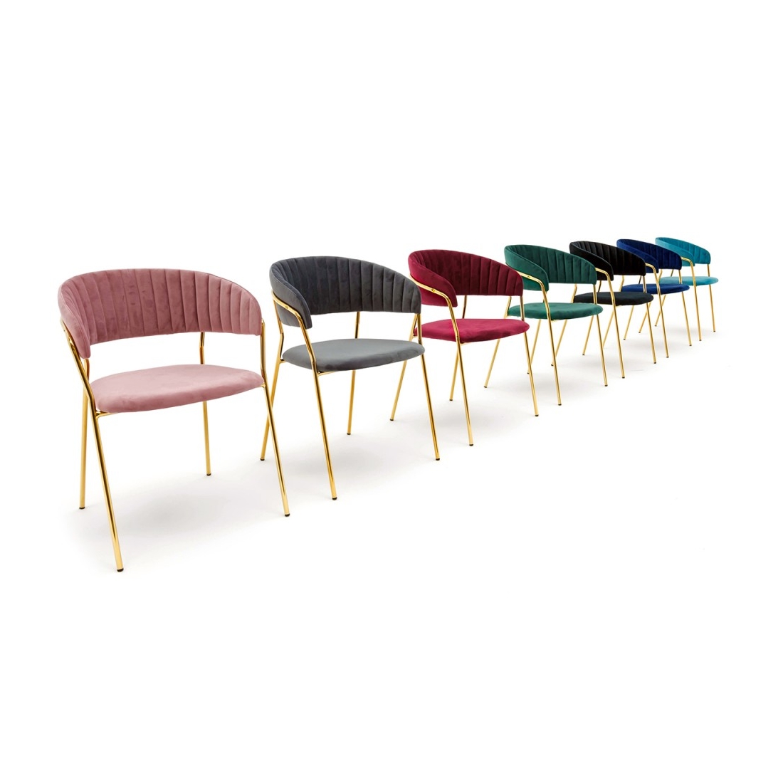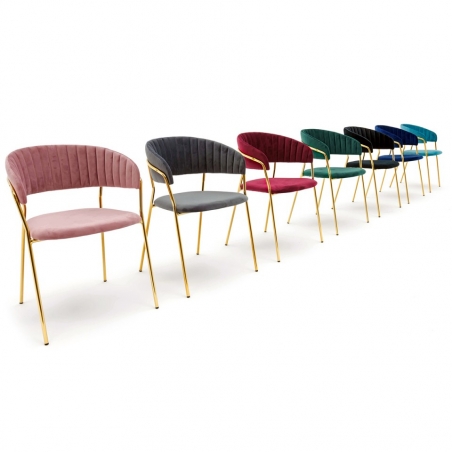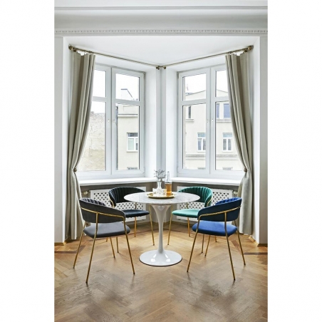 WHITE LABEL LIVING JOLIEN je pevně čalouněná židle z polyesterové tkaniny. Jádro židle je z překližky a ocelový rám je práškově stříkán ve zlaté barvě. Dostupná ve více barvách.