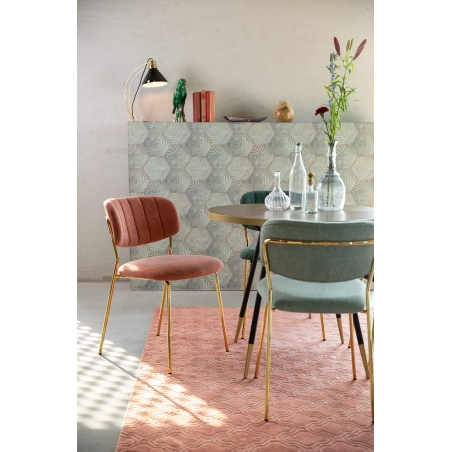 WHITE LABEL LIVING JOLIEN je pevně čalouněná židle z polyesterové tkaniny. Jádro židle je z překližky a kovový rám je práškově stříkán v černé barvě. Dostupná ve více barvách.