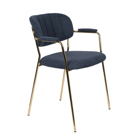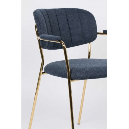 WHITE LABEL LIVING JOLIEN je pevně čalouněná židle s područkami z polyesterové tkaniny. Jádro židle je z překližky a železný rám je práškově stříkán ve zlaté barvě.