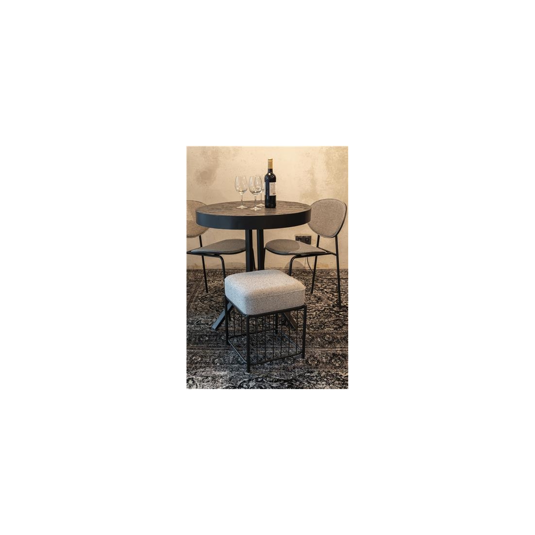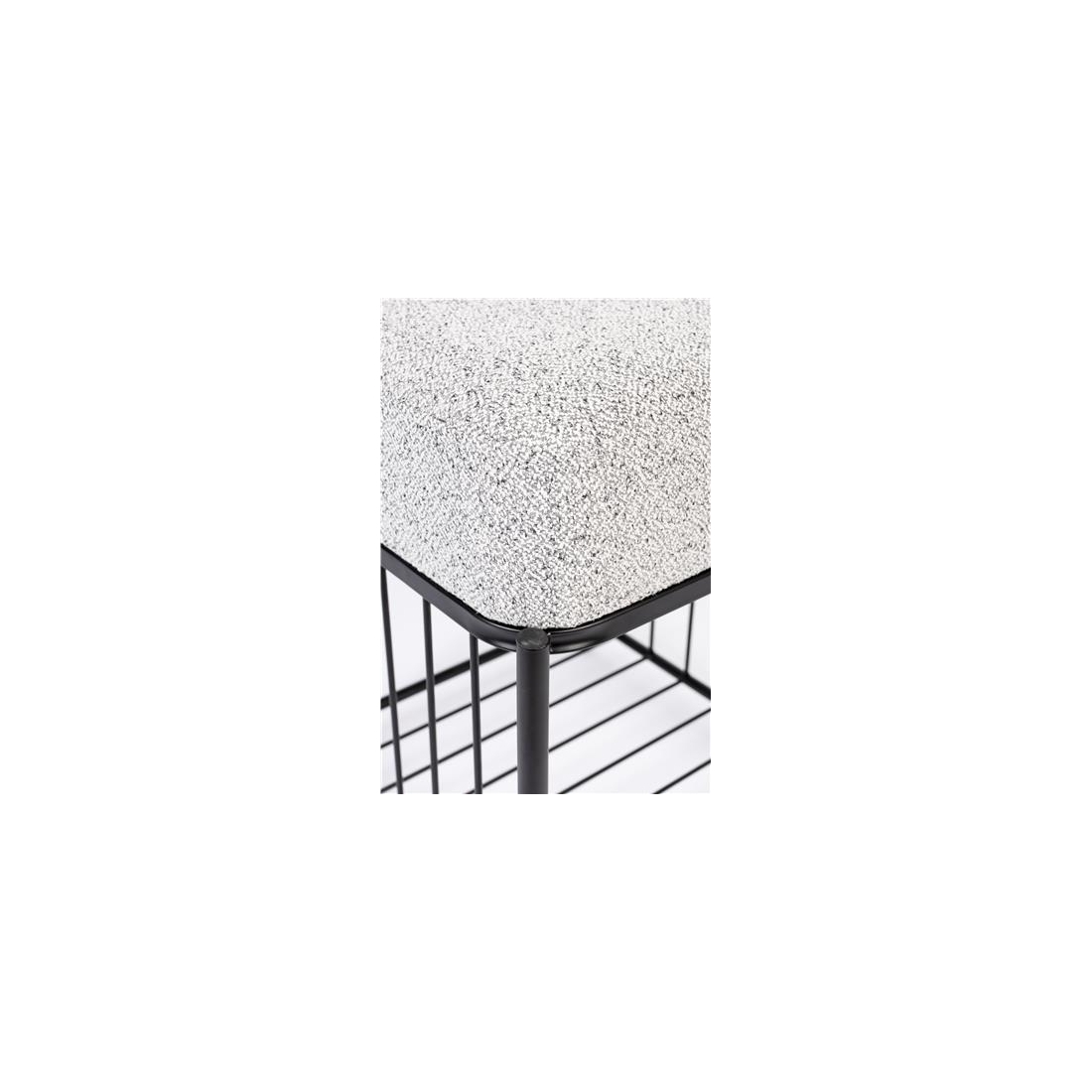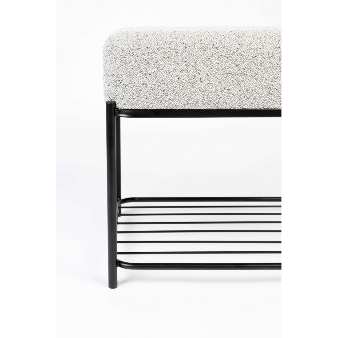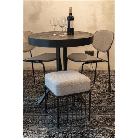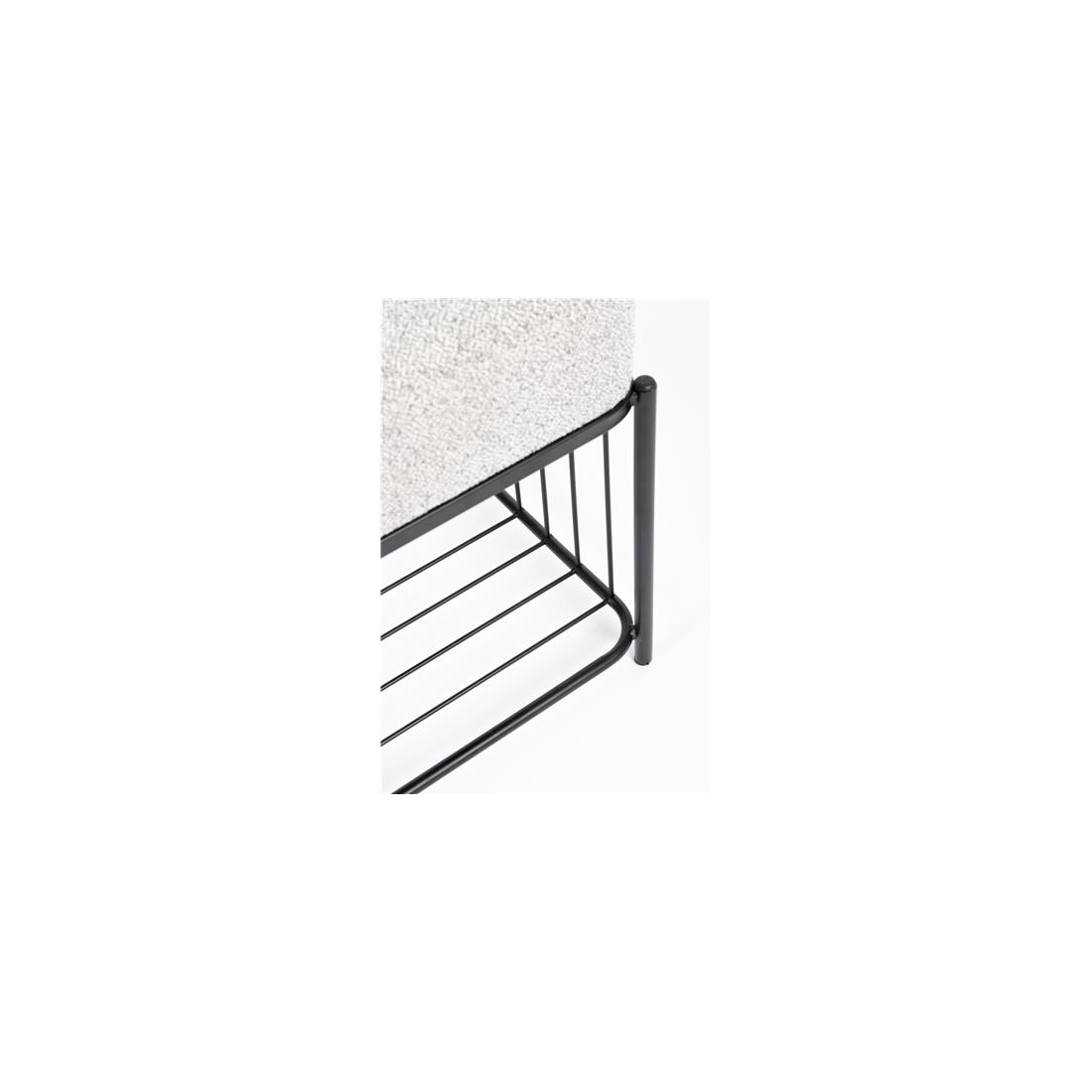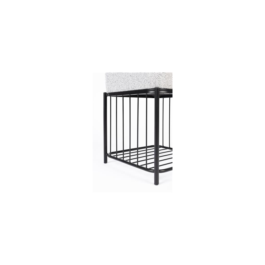 Lavice Milou ze 100% polyesterové tkaniny a mdf skořepiny z borovicového dřeva. Konstrukce lakovaná černou barvou.
