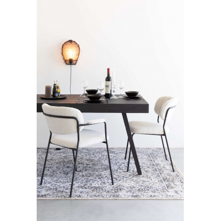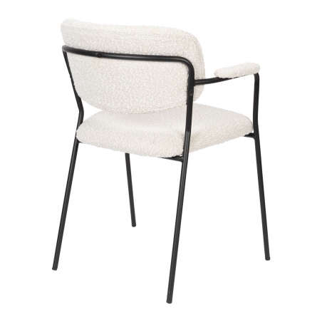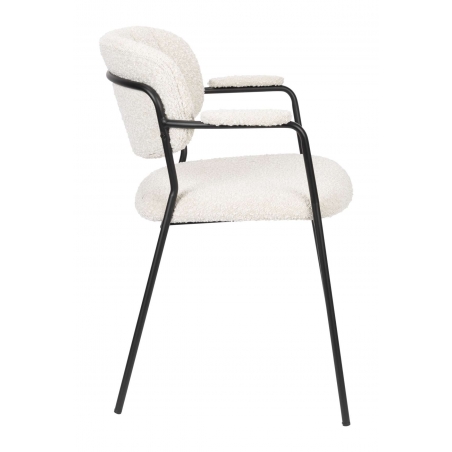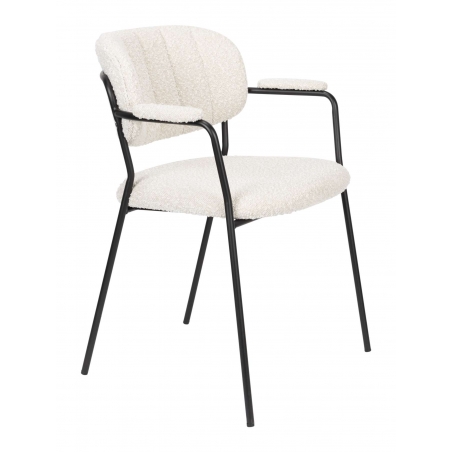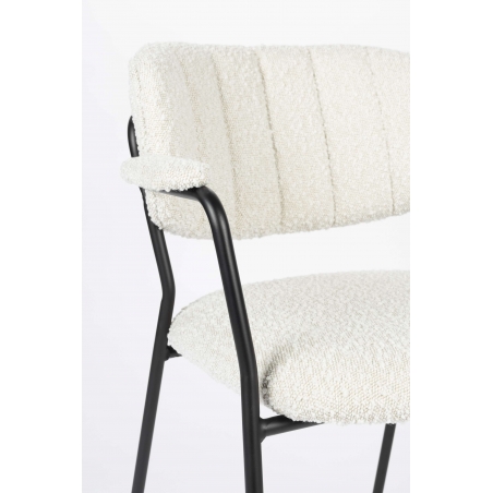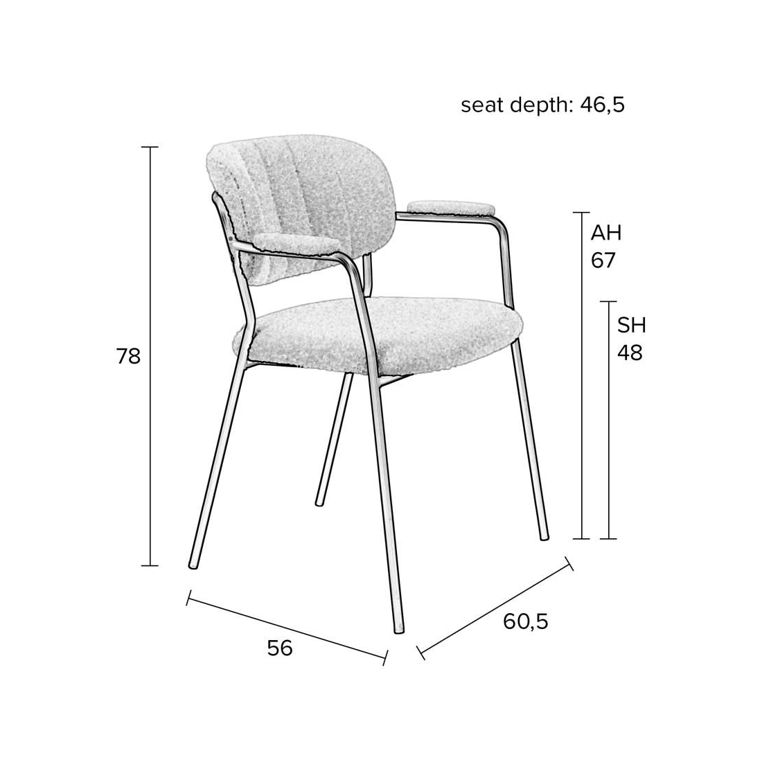 White Label Living Jolien je pevně čalouněná židle s područkami z polyesterové tkaniny. Jádro židle je z překližky a železný rám je práškově stříkán v černé barvě.