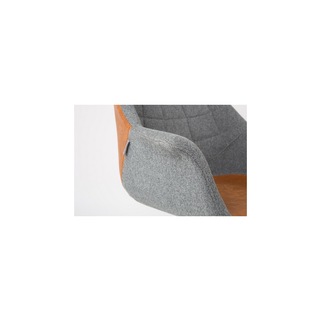Kancelářská židle Zuiver Doulton vyrobena z kvalitního polypropylenu, který je čalouněný v odolné látce. Nohy jsou vyrobeny z lakované oceli. Základ čalounění je šedá látka, která se kombinuje s hnědou vintage ekokůží.