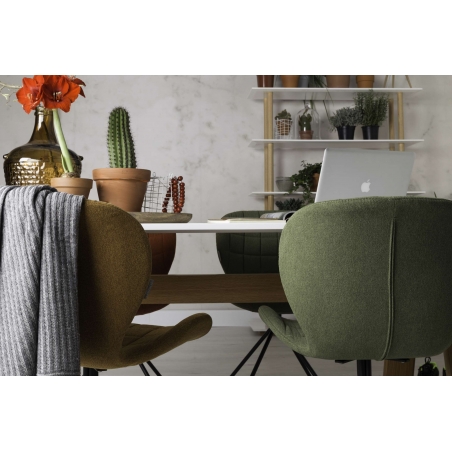 OMG je moderní židle s dokonale tvarovaným ergonomickým sedátkem. Dřevěná skořepina židle je čalouněna v 6 odstínech. Nohy jsou zhotoveny z černé oceli. OMG je k dispozici v různých verzích: čalouněná, PU kůže, samet a také jako kancelářská židle s kolečky. Na dřevěné podlahy doporučujeme použít speciální podlahové kluzáky OMG.