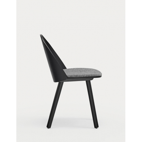 Design Uma židle se zrodil z jemné kombinace křivek a rovných linií a jejím cílem je vizuální jednoduchost a lehkost bez kompromisů v oblasti pohodlí. Polštář je celočalouněný. Opěradlo: jasanová překližka lakovaná. Sedák z překližky a látky. Nohy: lakované masivní kaučukové dřevo. Čistit suchým hadříkem, nepoužívat agresivní a abrazivní čističe.