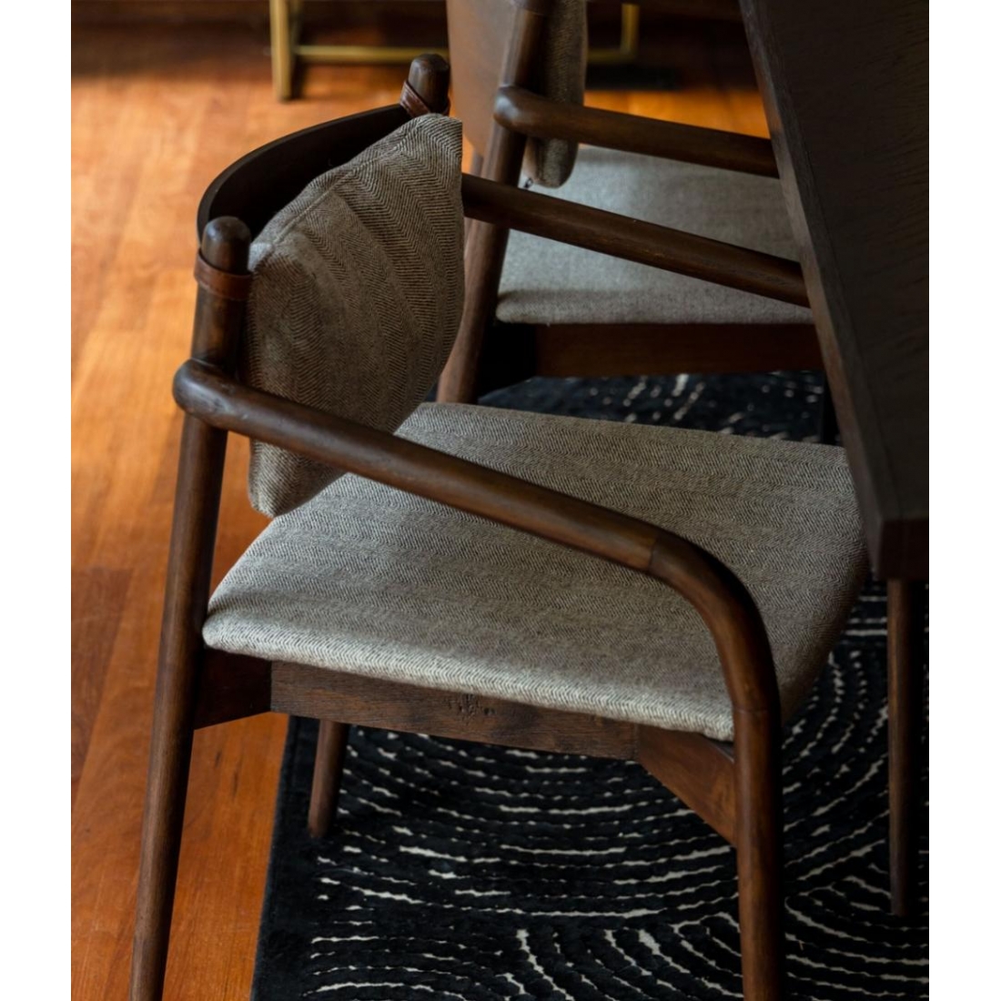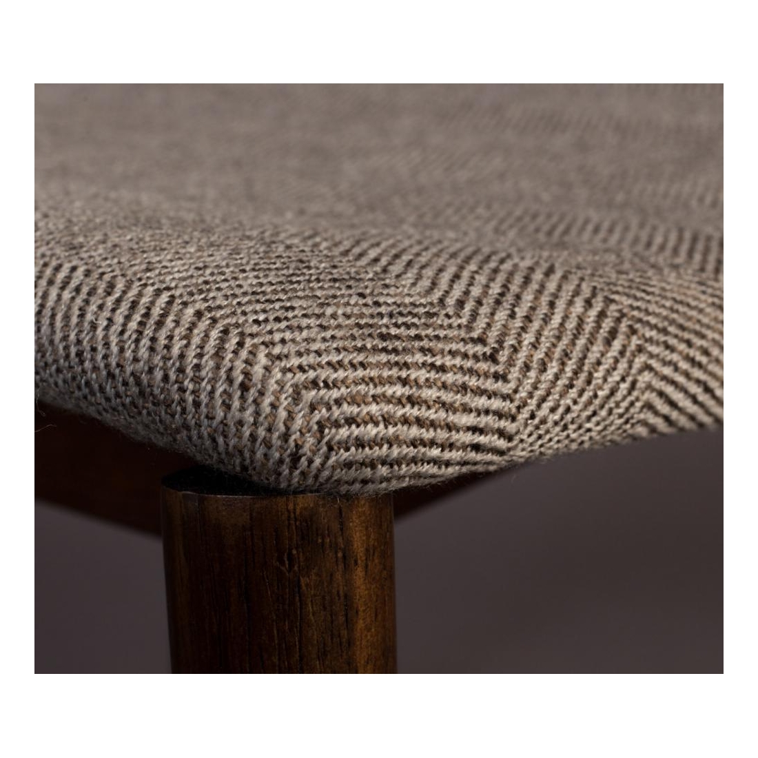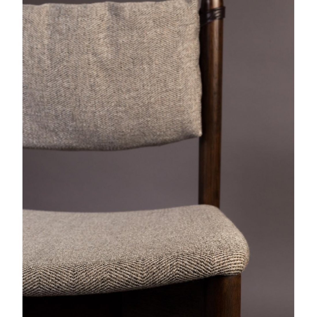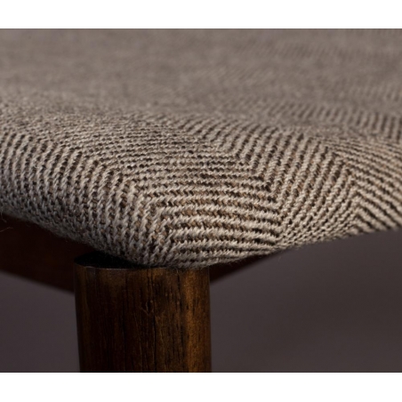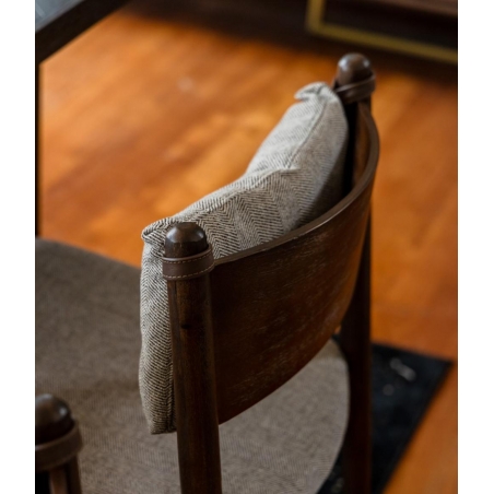 Židle Torrance z masivního kaučukovníkového rámu pokrytá polyesterovou tkaninou se vzorem rybí kosti. Ideální pro intimní prostředí pro vytváření krásných vzpomínek s blízkými. Detaily z PU kůže na zádové opěrce. Dostupná s područkami nebo bez nich nebo jako křeslo. Plstěné podložky a odnímatelný polštář na opěradle.