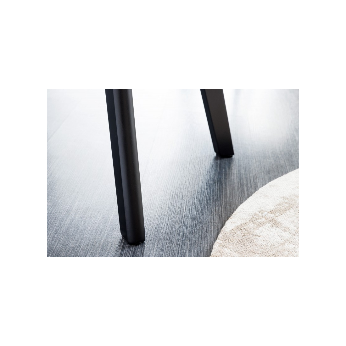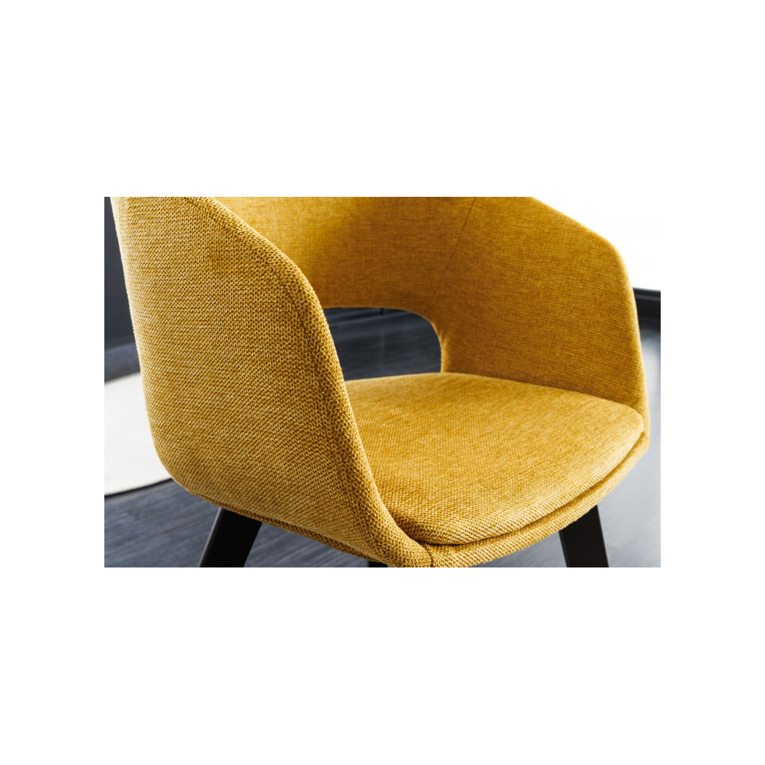 Pohodlná židle čalouněná v látce s vykrojenou zádí. Nohy černě lakované bukové.