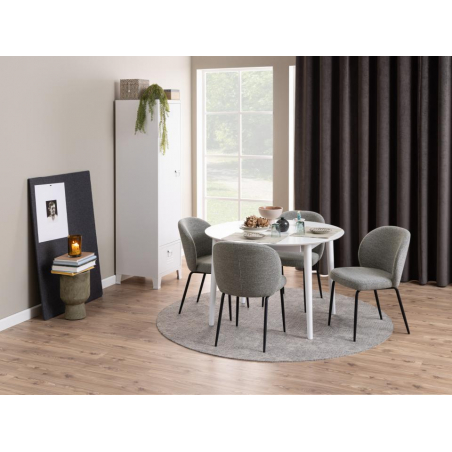 Tato jídelní židle je vyrobena z kombinace kovu a vysoce kvalitního polyesteru, což zaručuje její dlouhou životnost a výjimečnou odolnost. Kovová základna v elegantní černé barvě poskytuje pevnou a stabilní konstrukci, zatímco strukturovaná látka Monza z polyesteru je příjemná na omak a zároveň mimořádně odolná vůči opotřebení. S maximálním zatížením 110 kg a váhou pouhých 6,5 kg je židle robustní, ale zároveň snadno manipulovatelná.
