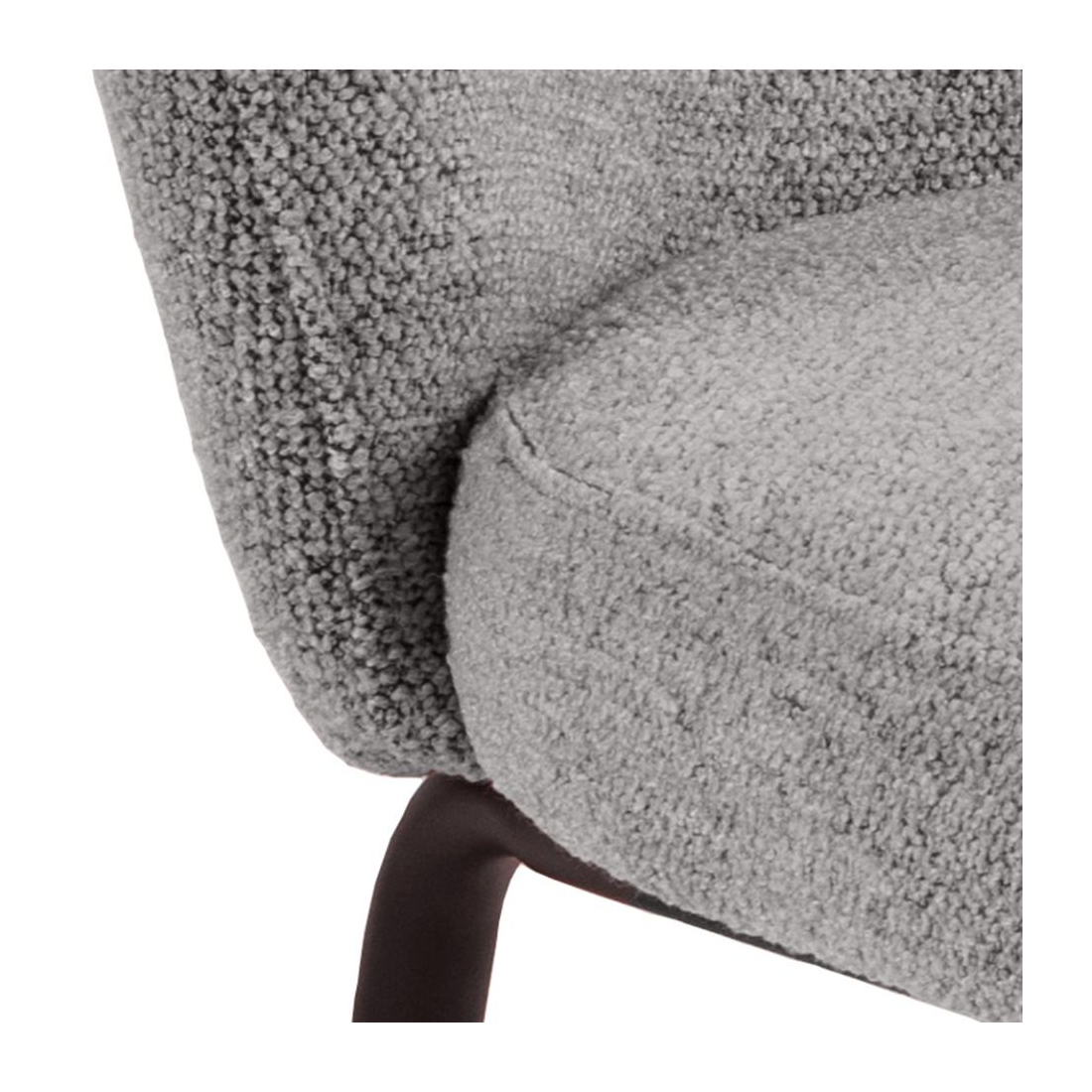 Jídelní židle Brooke s loketní opěrkou v antracitové látce. Dodejte své jídelně charakter s touto nadčasovou židlí. Tato jídelní židle je čalouněna antracitovou bouclé látkou s vysokou odolností. Všívané detaily dodávají sedadlu texturu a strukturu, kterou podpírají zkosené nohy s černým hrubým práškovým nástřikem.
