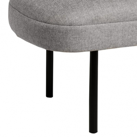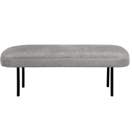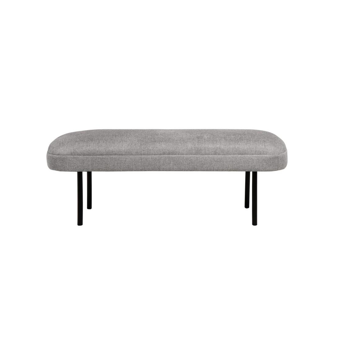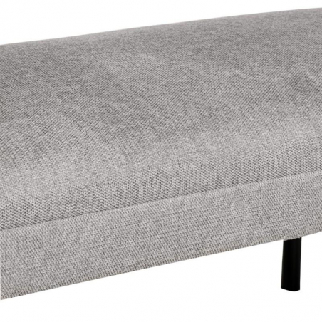 Čalouněná lavice ve více barvách s černýma kovovými nohami.