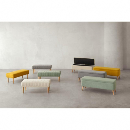Pri výrobe lavice ZURICH bol kladený dôraz na trvácnosť a stabilitu. Základ tvoria pevné drevené nohy, ktoré poskytujú spoľahlivú oporu a vnášajú do interiéru hrejivý prírodný prvok. Povrch lavice je čalúnený kvalitnou textíliou, ktorá je odolná voči bežnému opotrebovaniu a príjemná na dotyk. Premyslená konštrukcia s integrovaným úložným priestorom je navrhnutá tak, aby zvládala každodennú manipuláciu bez straty stability či estetickej hodnoty.