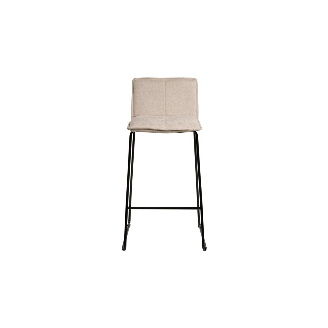 Barová židle s kovovou konstrukcí a čalouněným sedákem.