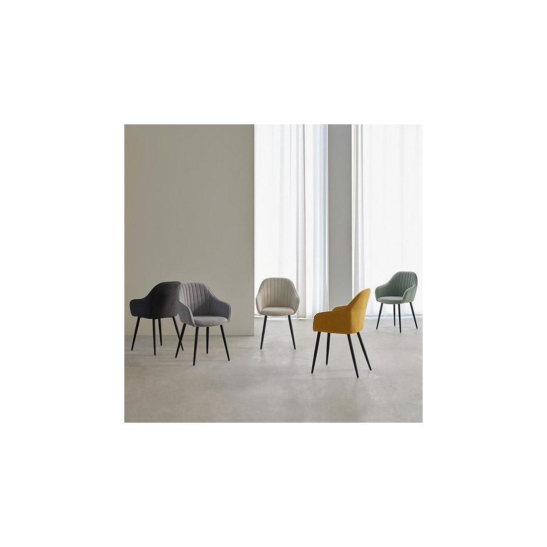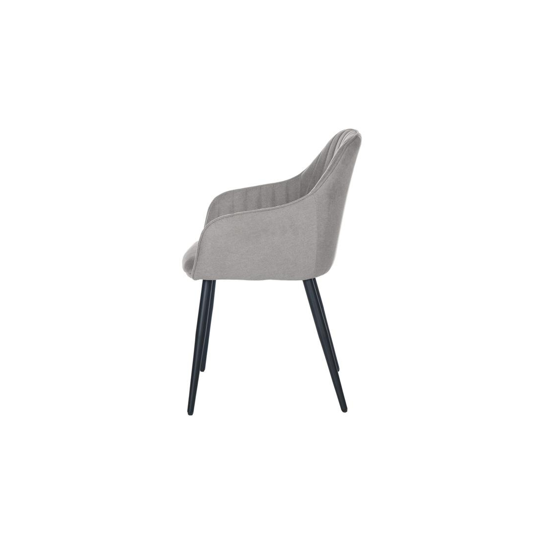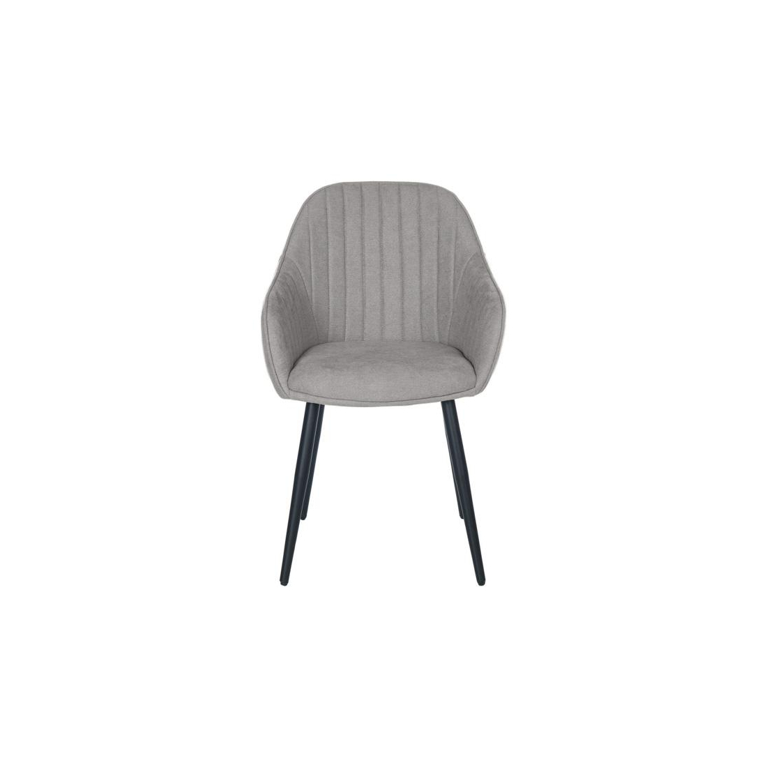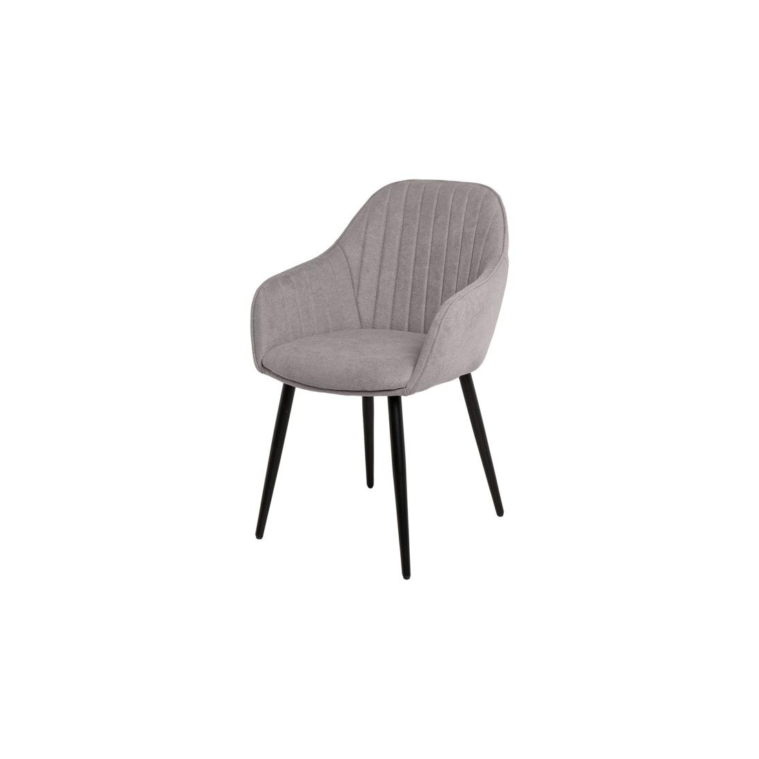 Židle čalouněná látkou s černýma kovovými nohama.