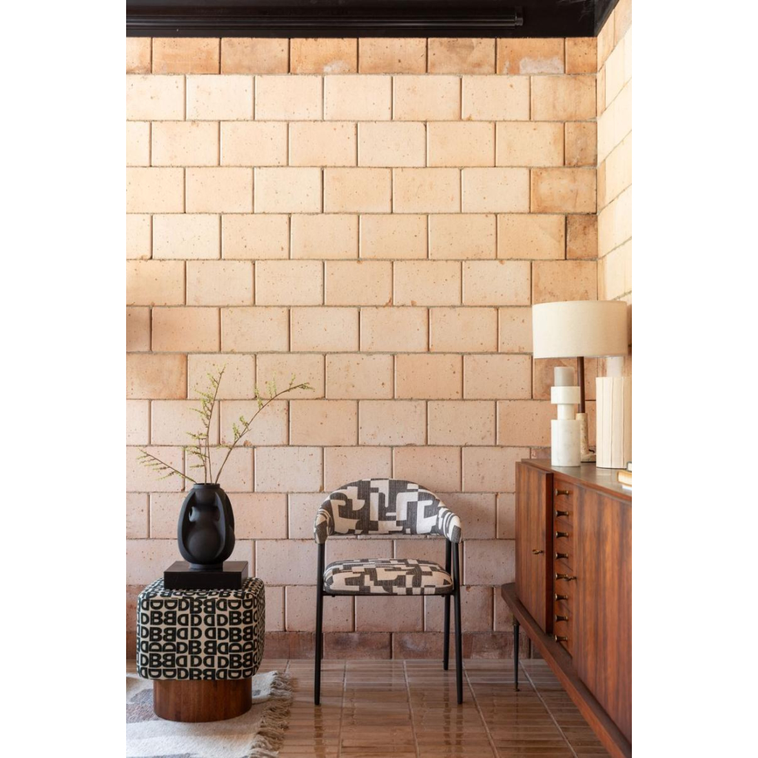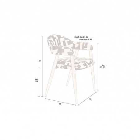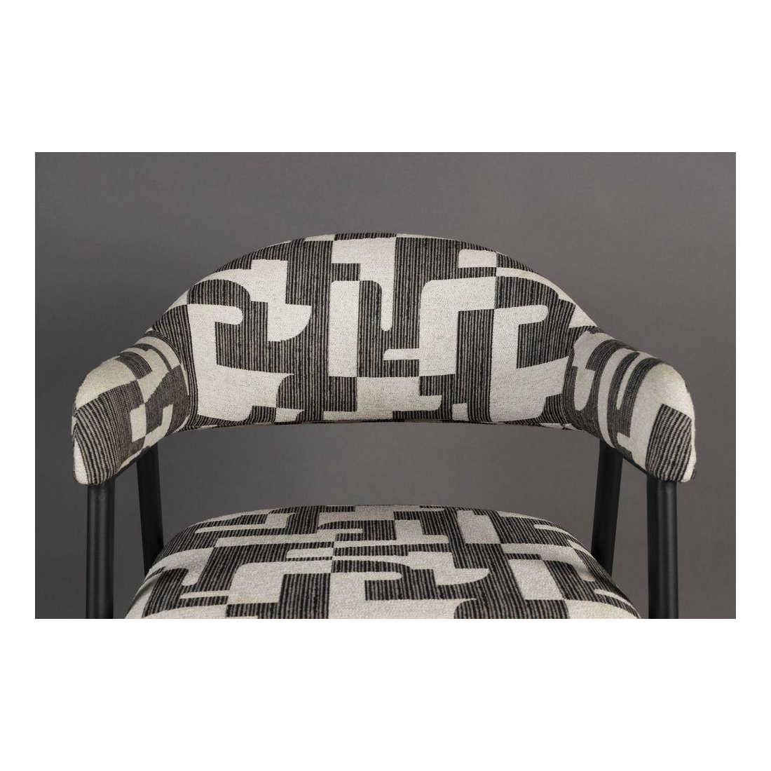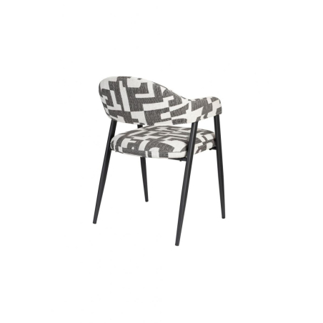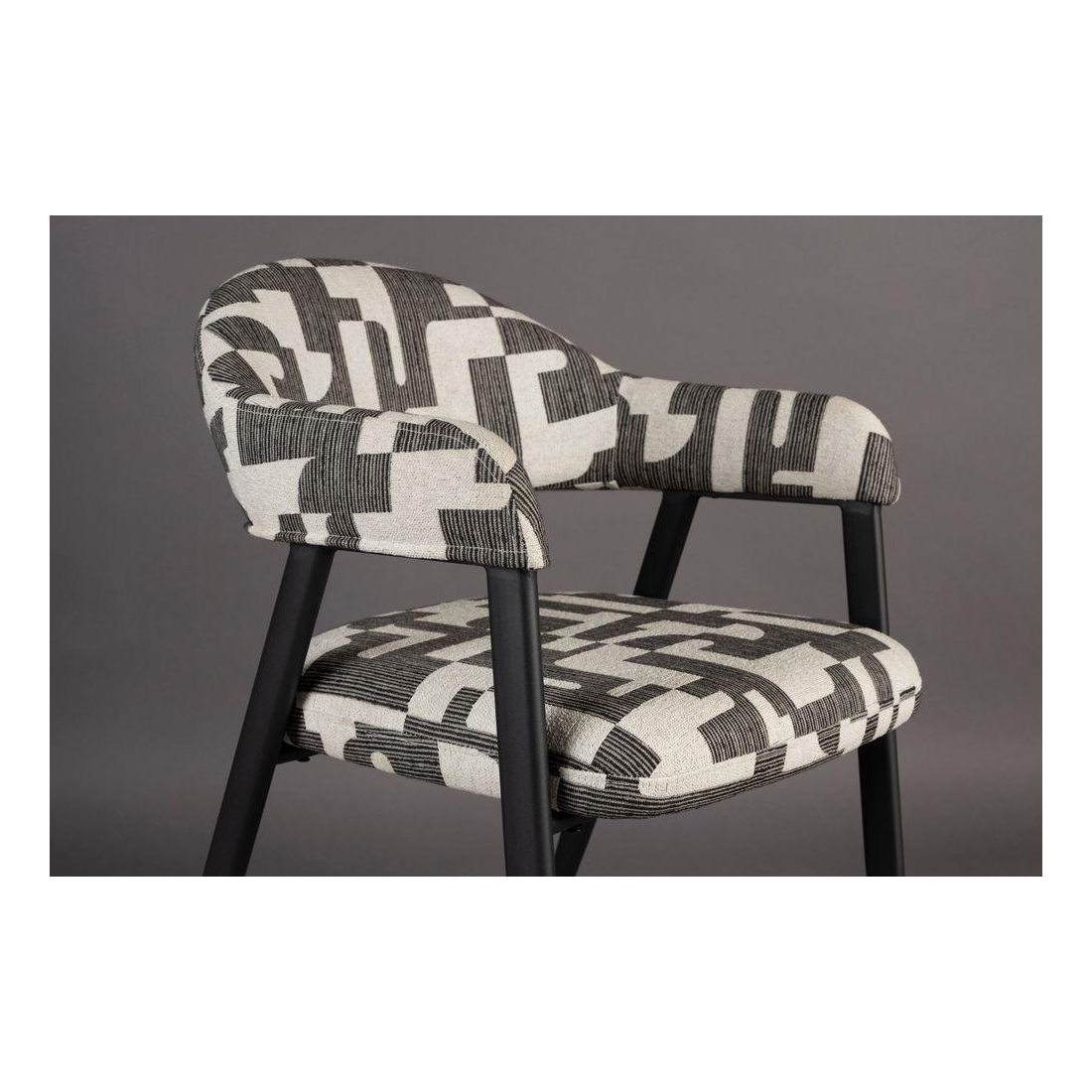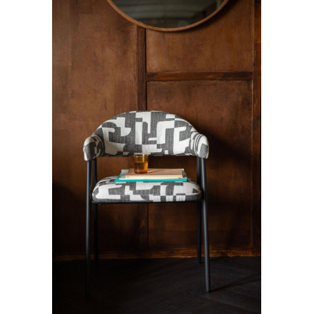 Tato jídelní židle je ideální pro hodiny pohodlného sezení díky měkkému sedadlu, opěradlu a opěrkám rukou. Grafické vzory a matná černá kovová základna dělají z tohoto kusu opravdový kousek.