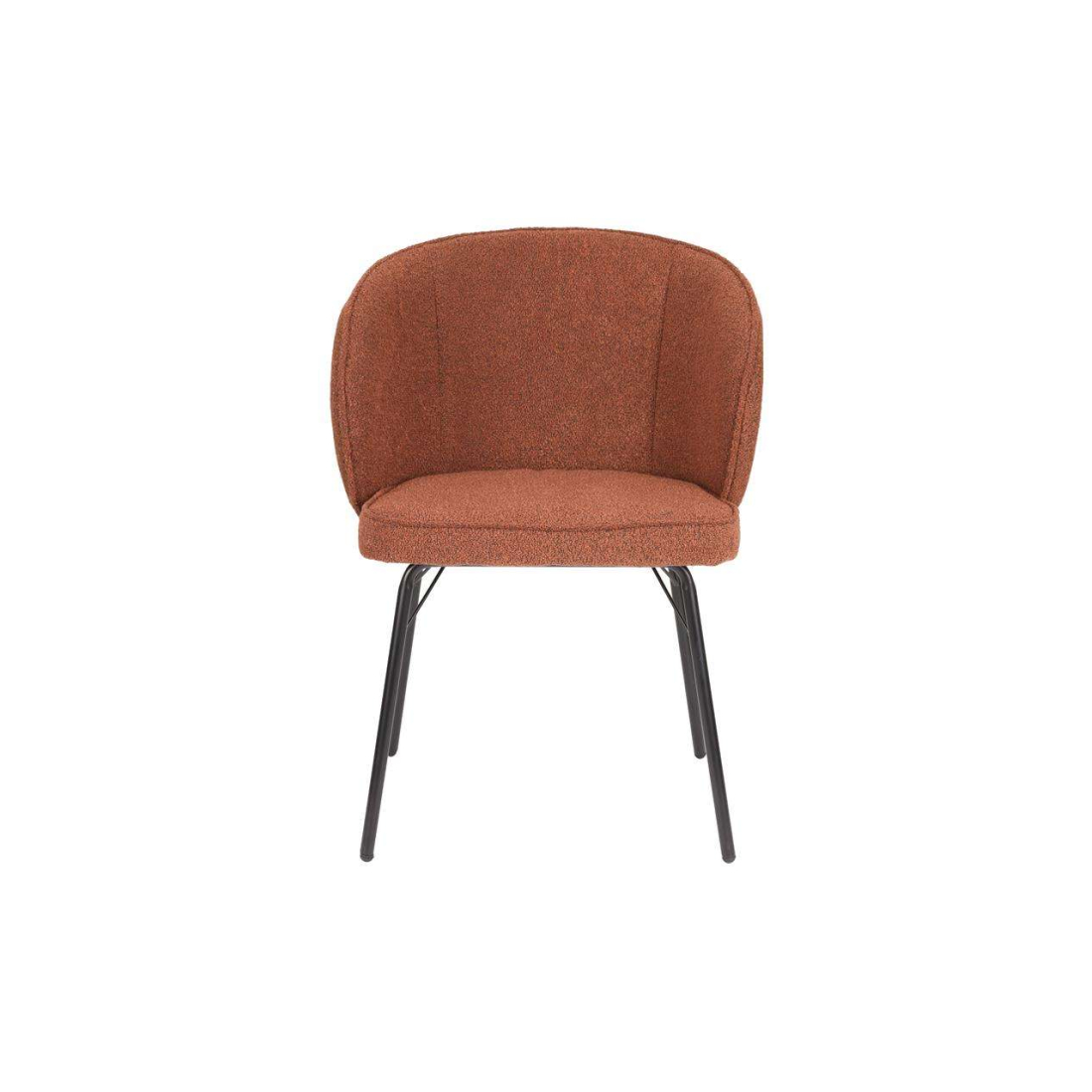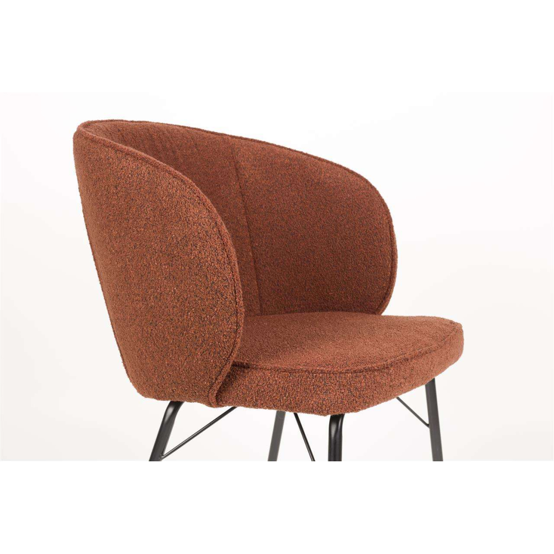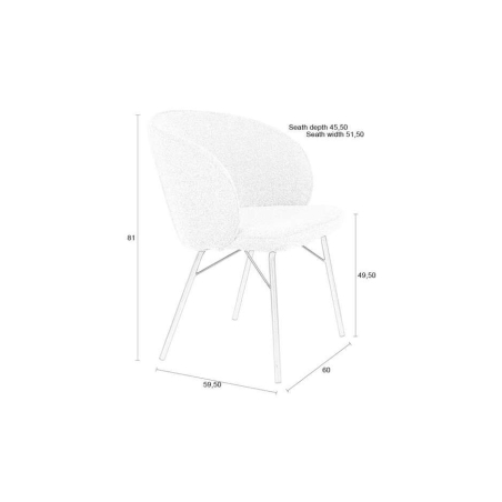 Designová jídelní židle v bouclé látce s černou kovovou podnoží.