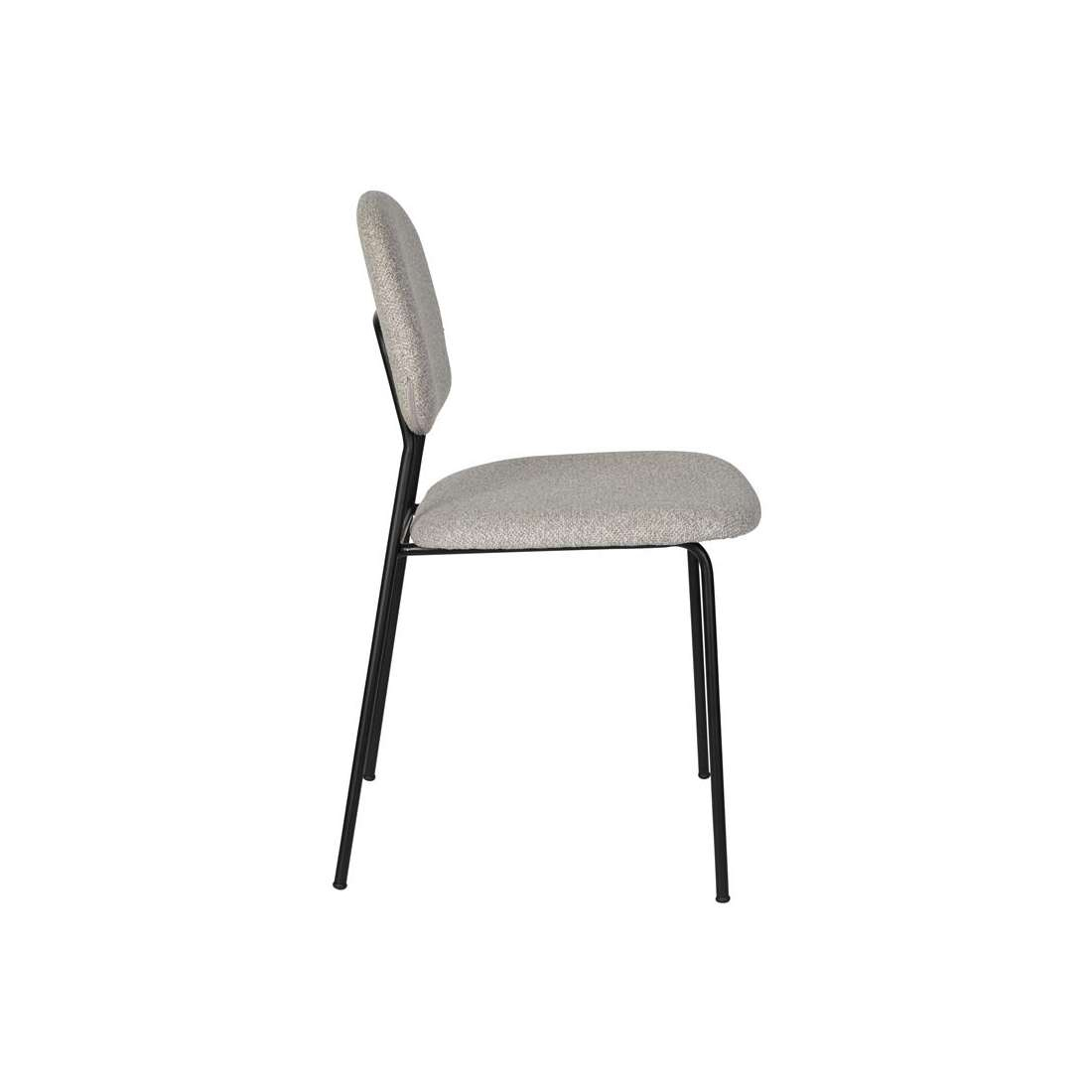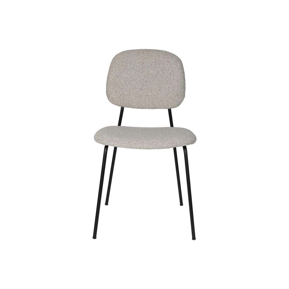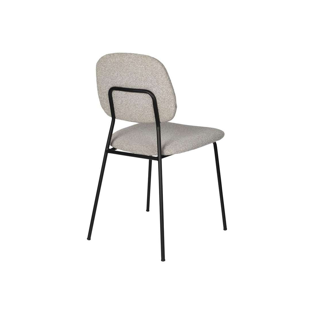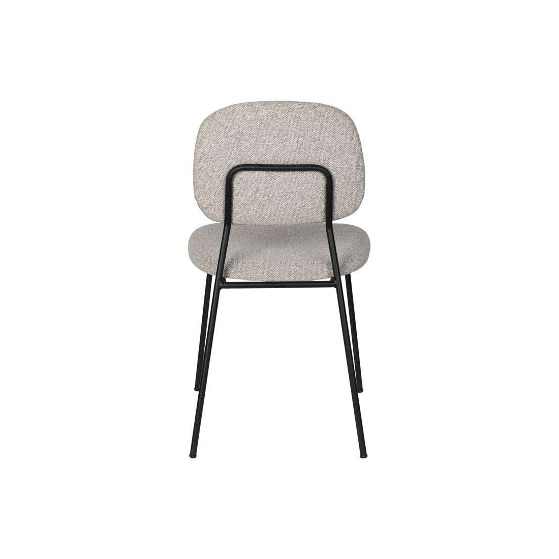 Židle Roos je směsí hravosti a pohodlí do vaší jídelny. Vyrobeno z měkké směsové látky v elegantních šedých tónech. Černé matné ocelové trubkové nohy s práškovým nástřikem dodávají moderní nádech a vytváří elegantní vzhled.
