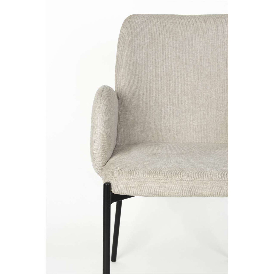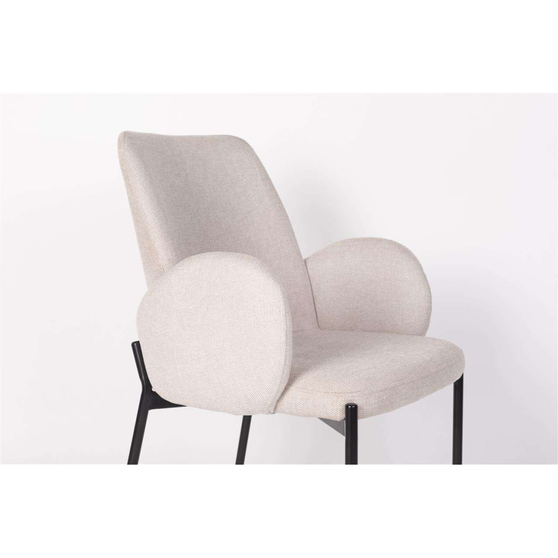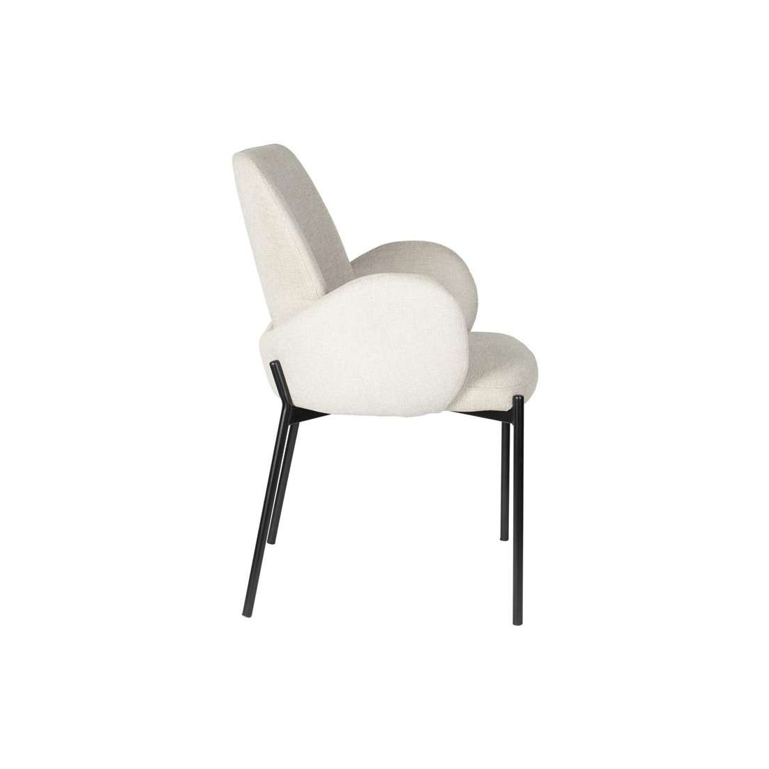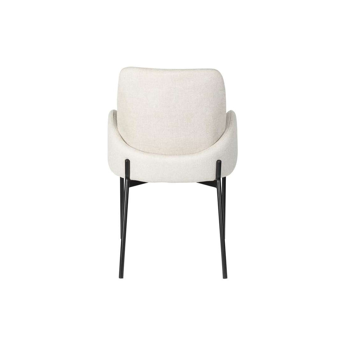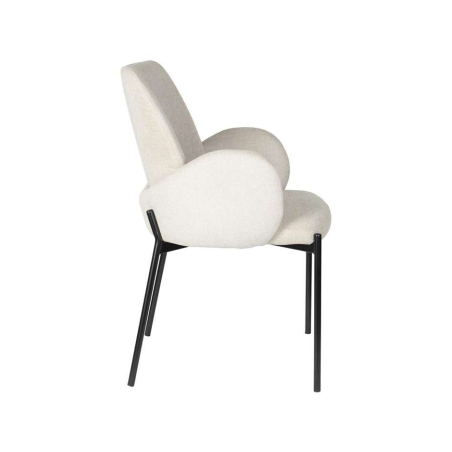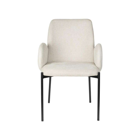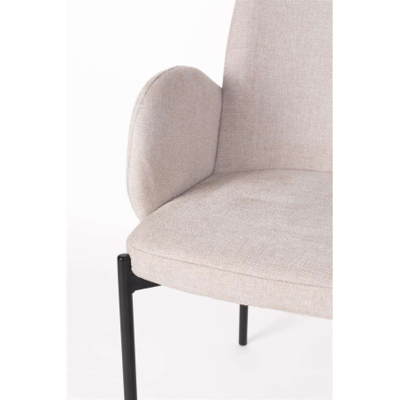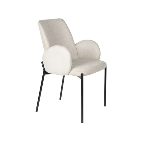 Designová čalouněná židle s černýma kovovými nohami.
