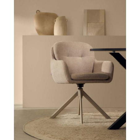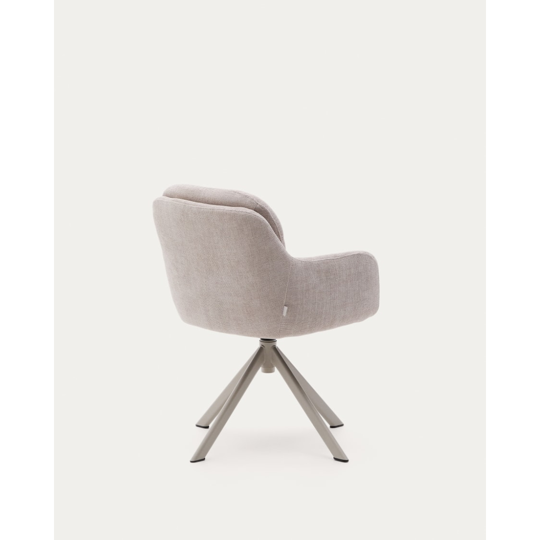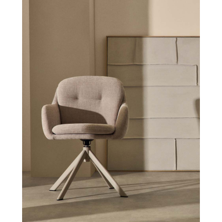 Čalouněná židle otočná o 180º s návratem s trendovým a moderním designem do jídelny nebo kuchyně. Kombinace kovové konstrukce v černé barvě a čalounění sedáku ve více barvách dodává každému koutu domu moderní a sofistikovaný nádech. Kus, který se přizpůsobí všem stylům, vynikne v moderních a minimalistických stylech.