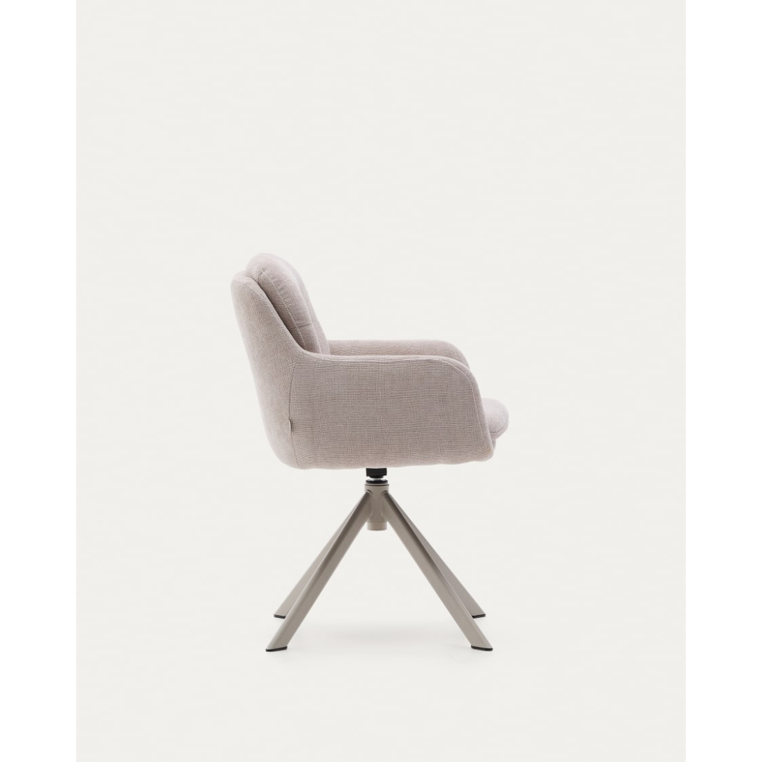 Otočná židle Dorina v látce s ocelovýma nohama v béžovém nebo zeleném provedení. Tkanina vyrobená z recyklovaného materiálu od dodavatele s certifikací Global Recycled Standard, který zajišťuje menší využití původního materiálu a zdrojů. Dodavatel látky s certifikací OEKO TEX® STANDARD 100 pro ekologicky bezpečnou a ekologicky zodpovědnou výrobu. Dostupné...