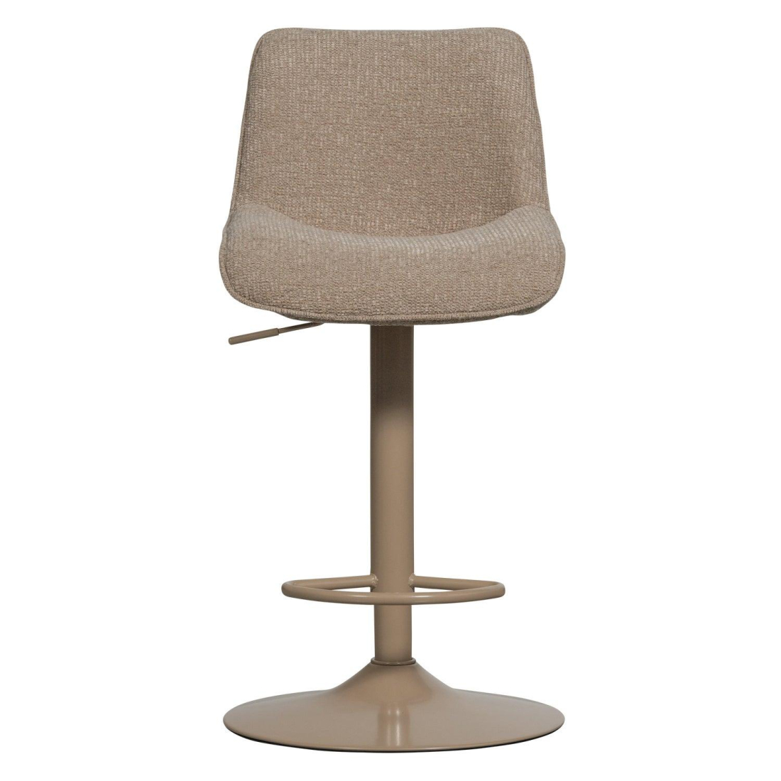 Stylová, měkká, nastavitelná barová židle Marten. Židle má štíhlou kovovou základnu ve stejné barvě jako čalounění a stojí pevně. Židle je čalouněná pevnou tkanou látkou.