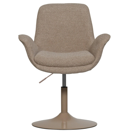 Stylová, měkká, nastavitelná, otočná jídelní židle. Židle má štíhlou kovovou základnu ve stejné barvě jako čalounění a stojí pevně. Židle je čalouněná pevnou tkaninou vyrobenou ze 100% polyesteru.