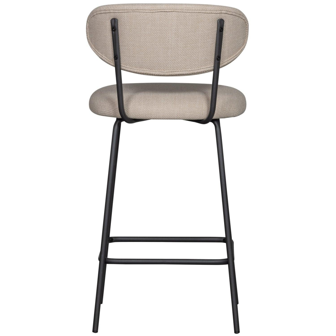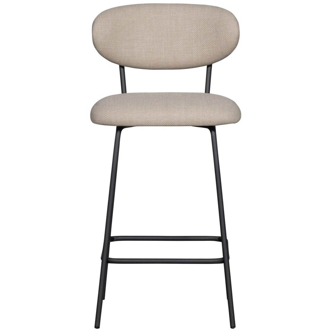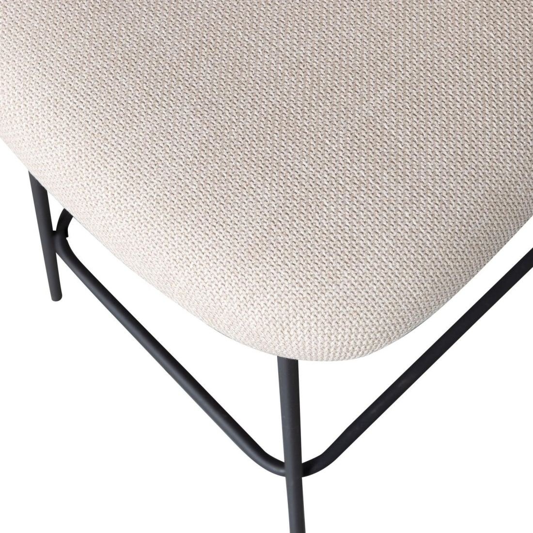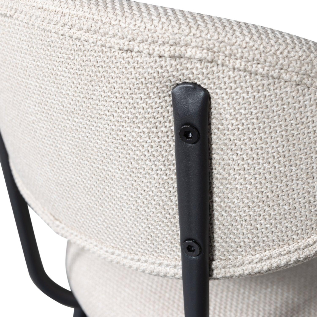 Moderní barová židle Kjeld čalouněná tkanou látkou, s matnou černou kovovou základnou. Židle má štíhlou kovovou základnu v černé barvě. Sedák je čalouněn hustou tkanou látkou a díky vydutému opěradlu je příjemný a pohodlný na sezení. Látka zůstává v výborném stavu po dlouhou dobu díky své tloušťce a odolnosti vůči žmolkování.