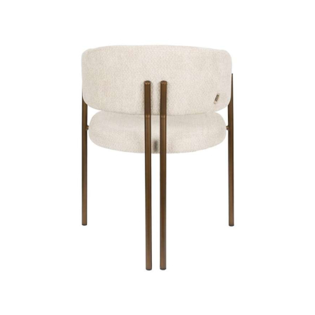 Kovová jídelní židle Naida s bronzovou povrchovou úpravou. Sedák a opěradlo, oboje bohatě čalouněné látkou bouclé v teplém odstínu.