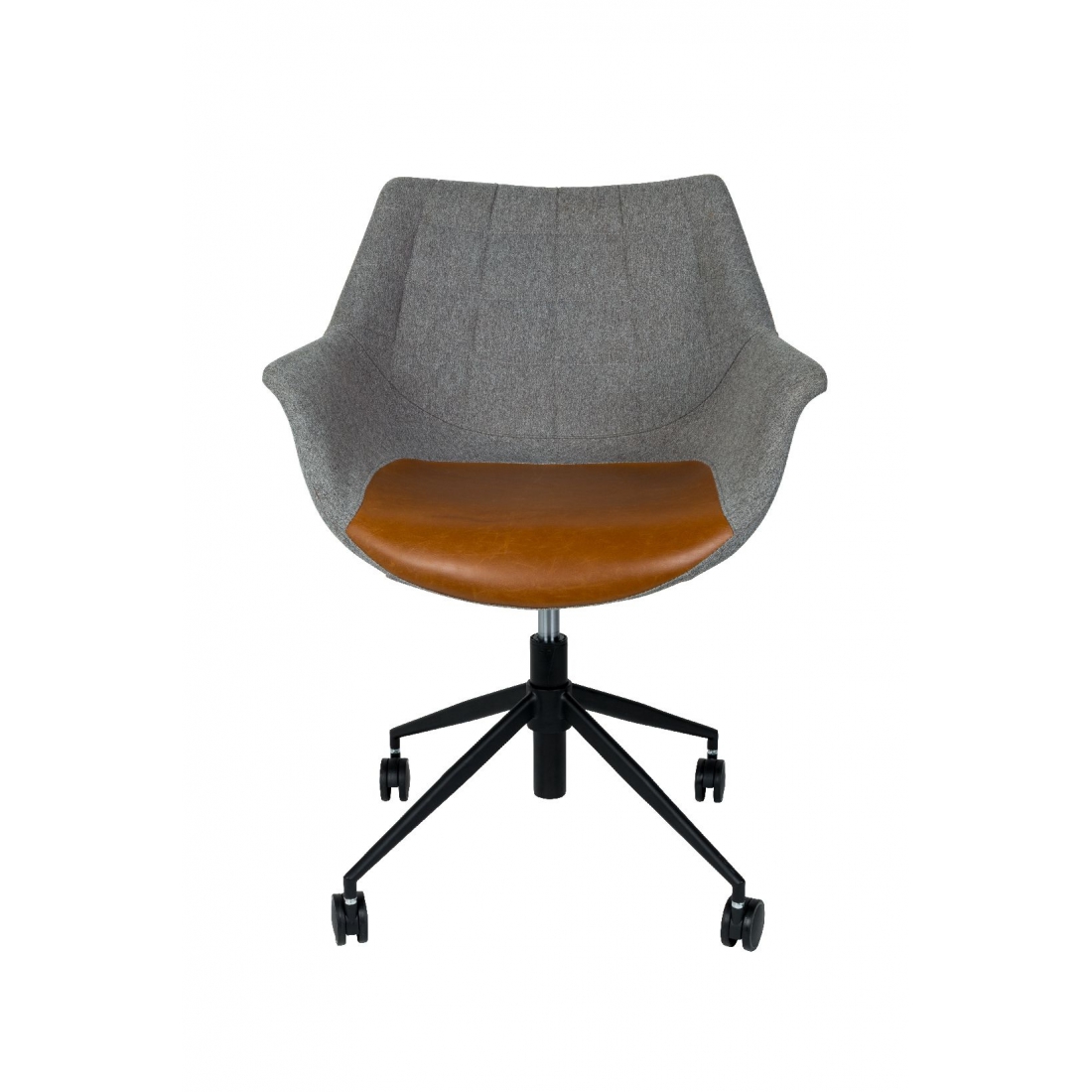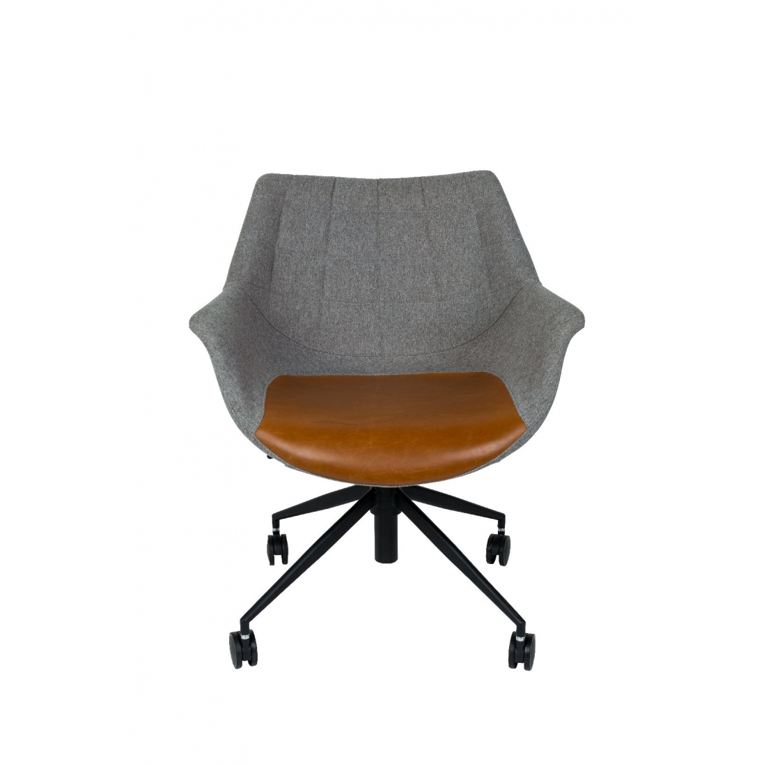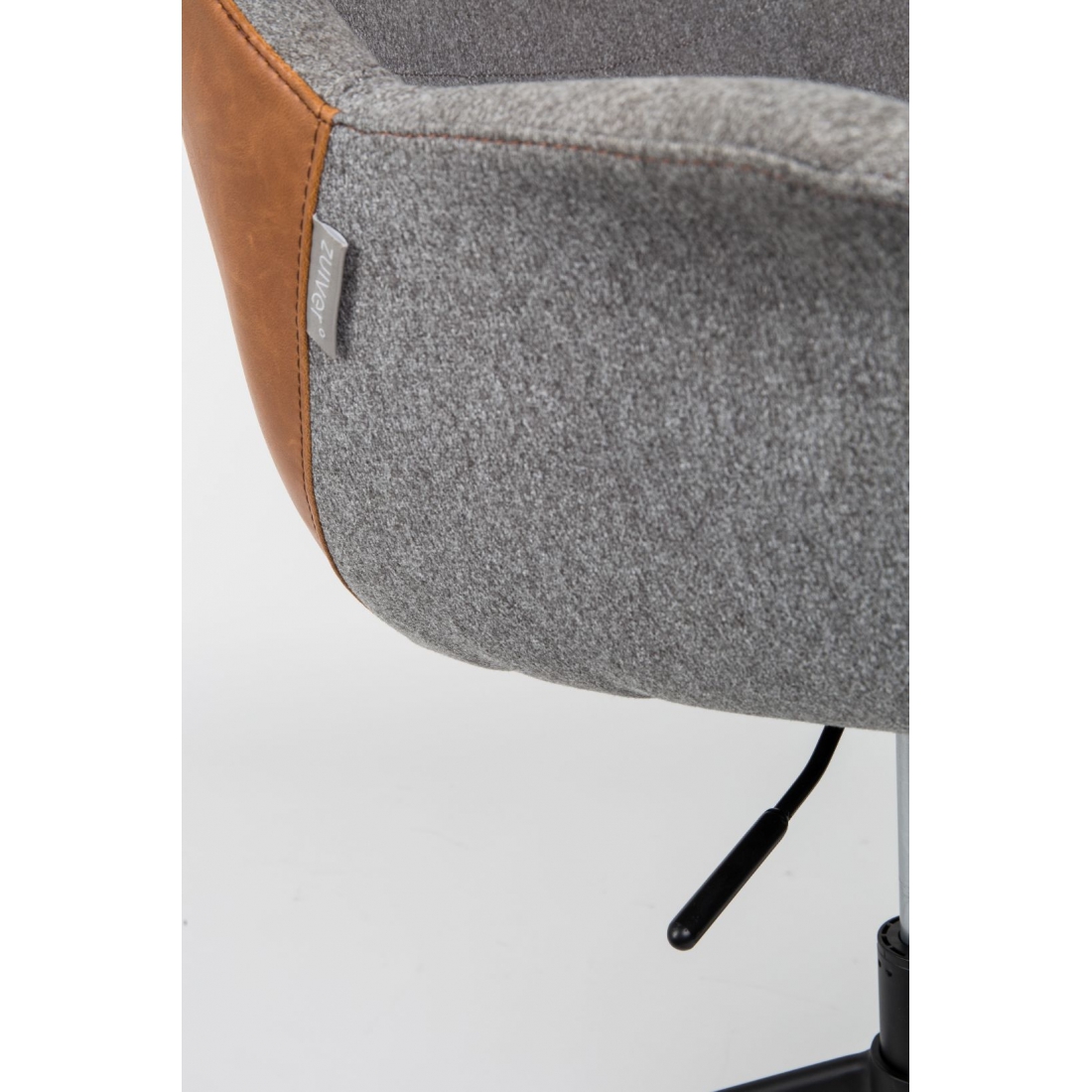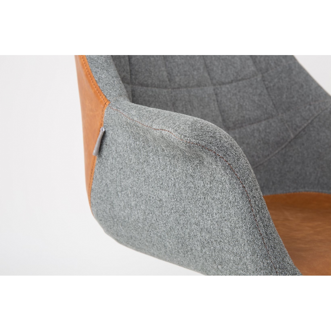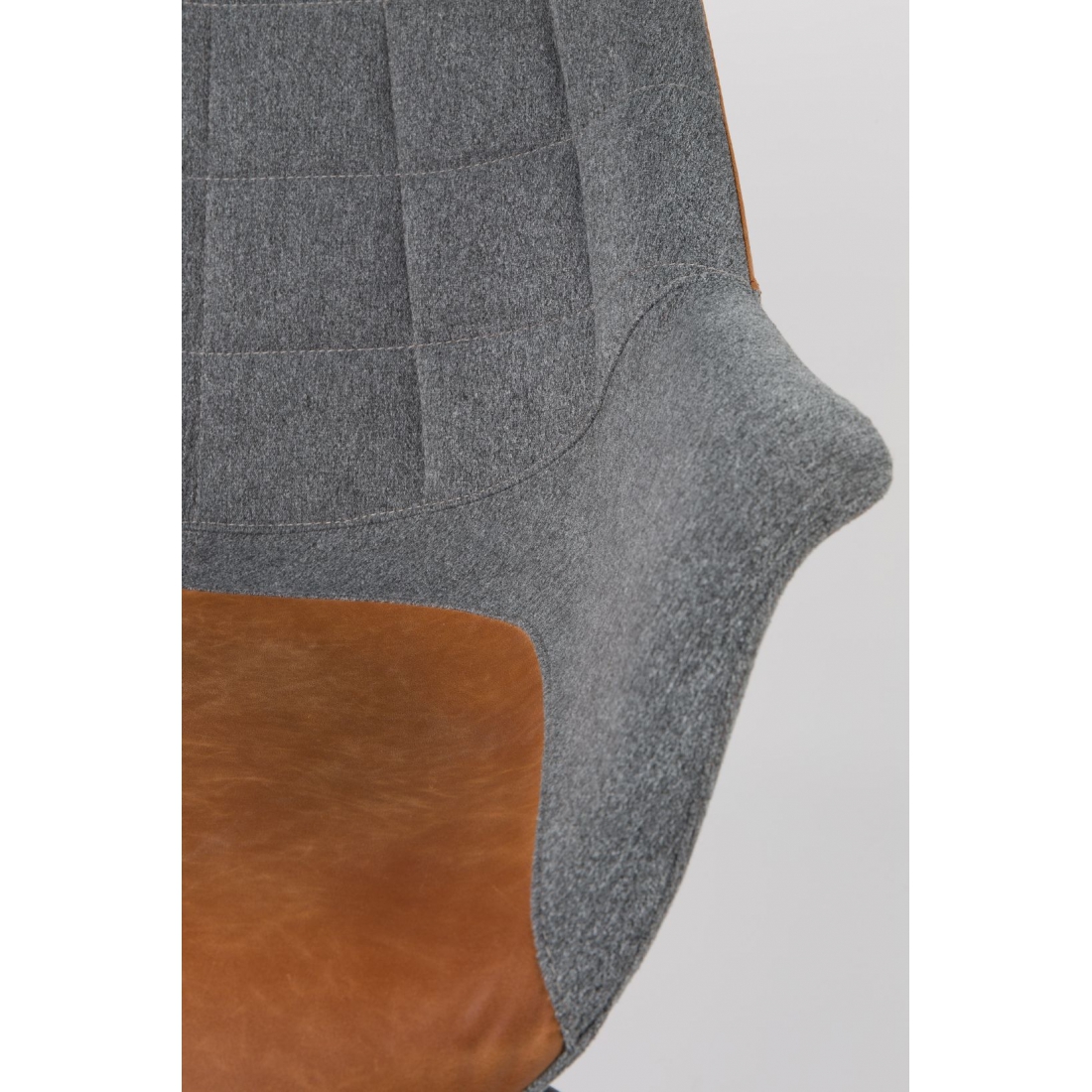 Kancelářská židle Zuiver Doulton vyrobena z kvalitního polypropylenu, který je čalouněný v odolné látce. Nohy jsou vyrobeny z lakované oceli. Základ čalounění je šedá látka, která se kombinuje s hnědou vintage ekokůží.