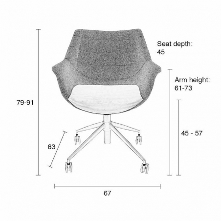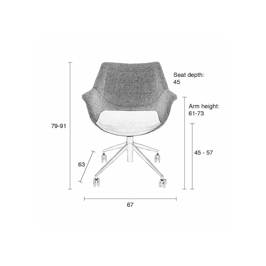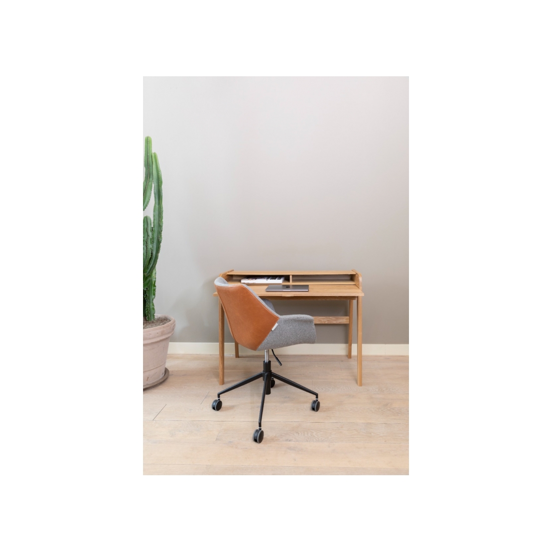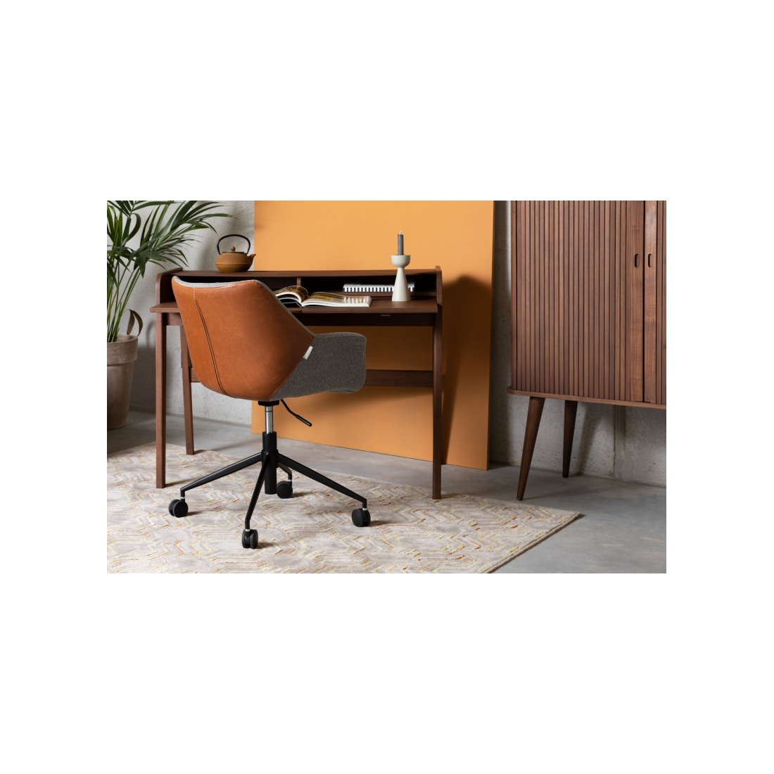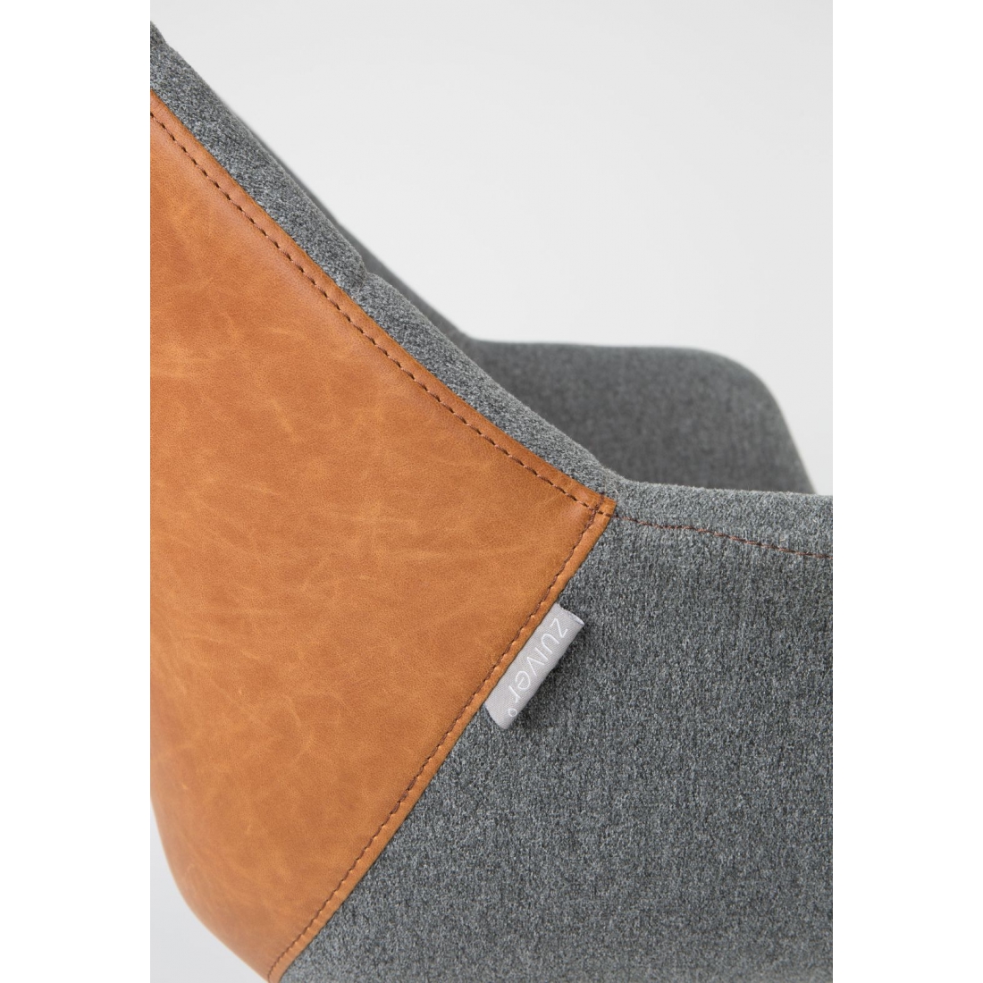 Kancelářská židle Zuiver Doulton vyrobena z kvalitního polypropylenu, který je čalouněný v odolné látce. Nohy jsou vyrobeny z lakované oceli. Základ čalounění je šedá látka, která se kombinuje s hnědou vintage ekokůží.