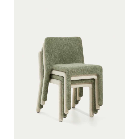 Stohovatelná židle LORIA čalouněná strukturovanou žinylkovou tkaninou s 3D efektem a vodoodpudivou úpravou. Má středně pevné sedlo díky struktuře překližky a vstřikované pěny s vysokou hustotou 55 kg/m3. Tkanina je vyrobena z recyklovaného materiálu od dodavatele certifikovaného podle globálního recyklovaného standardu, který zajišťuje omezené využití zdrojů a primárního materiálu, a OEKO-TEX® STANDARD 100 certifikovaného pro ekologicky bezpečnou a šetrnou výrobu. FSC™ 100% certifikovaný řetězec péče o dřevo a odpovědný lesnický model. Funkční a odolný, vyniká také svou lehkostí a ergonomií, což usnadňuje manipulaci a stohování, což umožňuje snadné přemísťování nebo skladování pro každou příležitost.