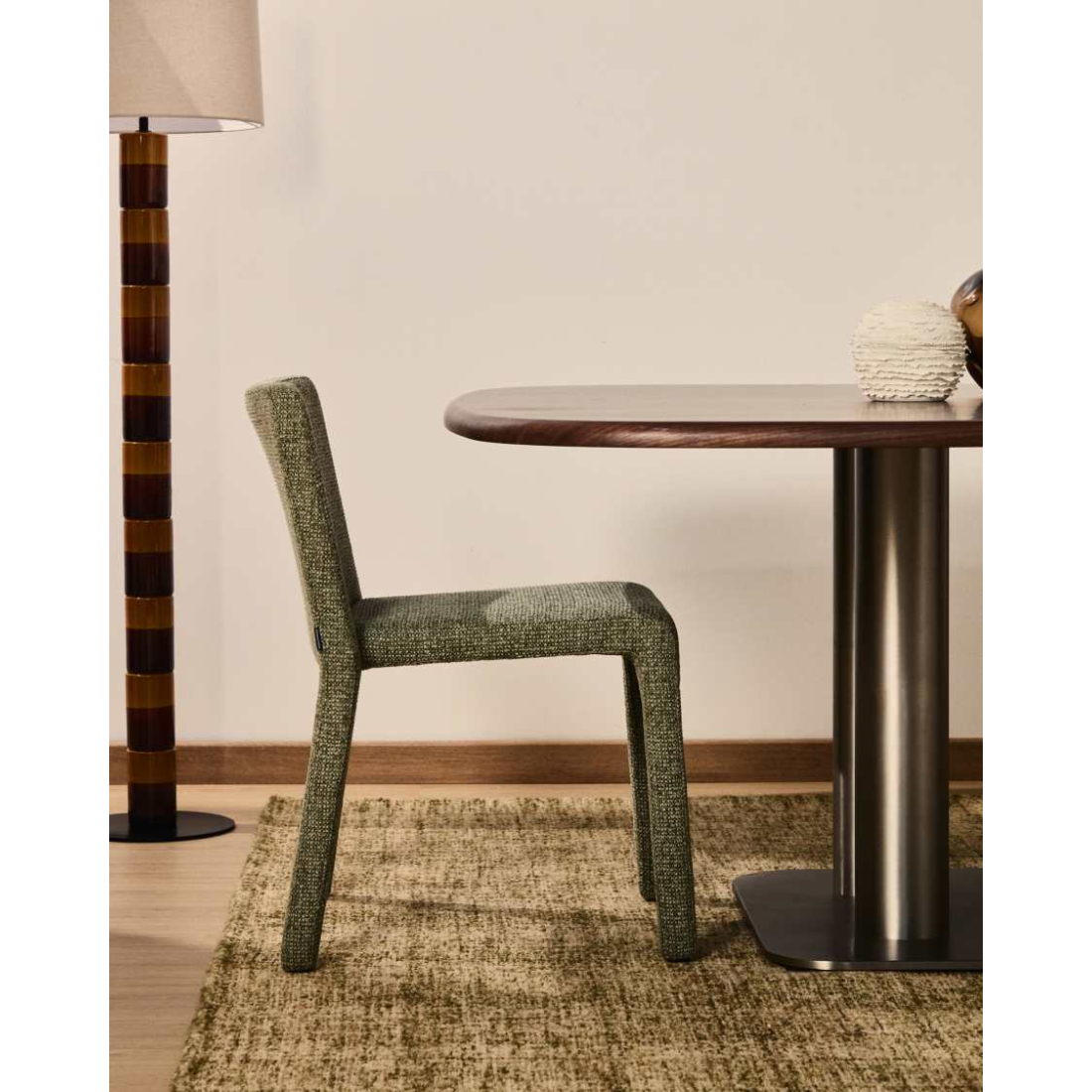 POVOLTE designovou plnou čalouněnou židli. Pohodlná a robustní židle je vyrobena z ocelového rámu s překližkovým sedákem, zcela pokrytá vrstvou polyuretanové pěny a plně čalouněná příjemnou a měkkou látkou Tintle. Látka je výrazná díky barevné směsi vláken, dodává nábytku hloubku.